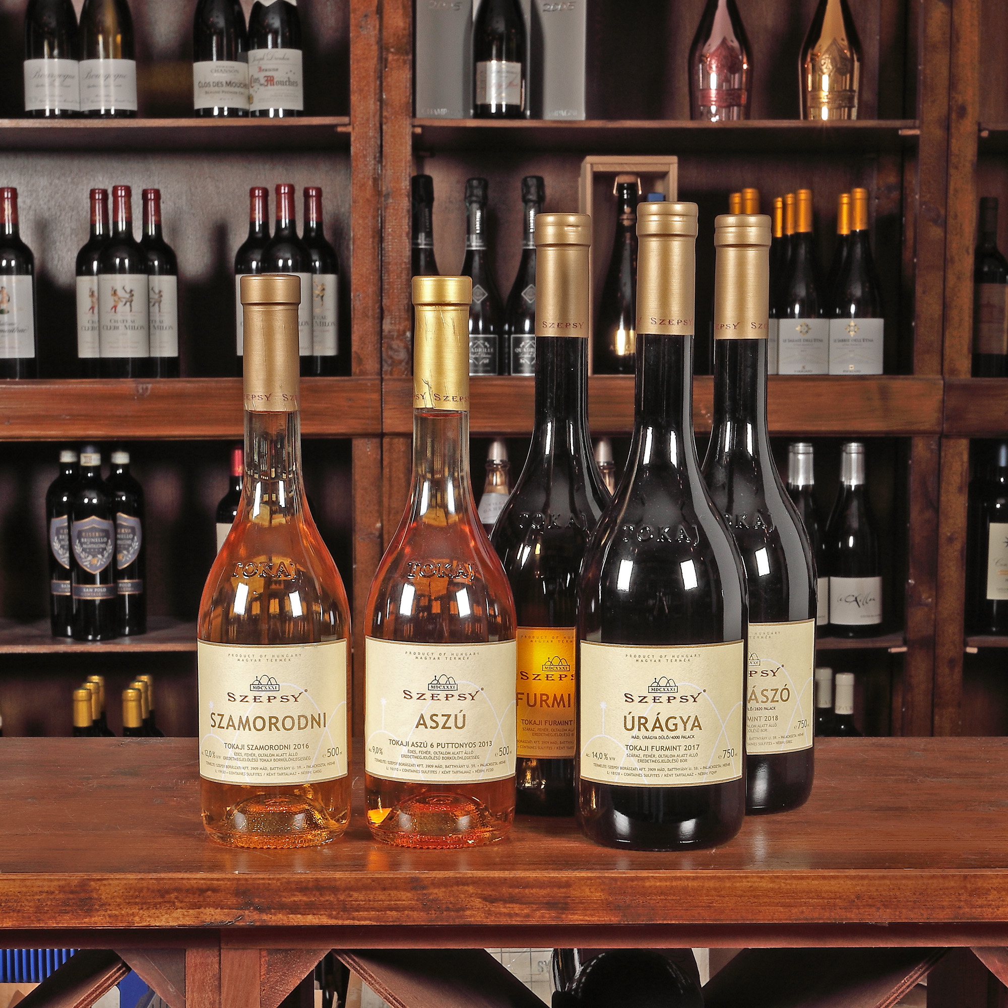 Szepsy Furmint 2017, sec, 1st x 0,75l Uragya Furmint 2017, sec, 1st x 0,75l Nyulaszo Furmint 2018, sec, 1st x 0,75l Szepsy Edes Szamorodni 2016, dulce, 1st x 0,5l Szepsy 6 Puttonyos Aszu 2013, dulce, 1st x 0,5l