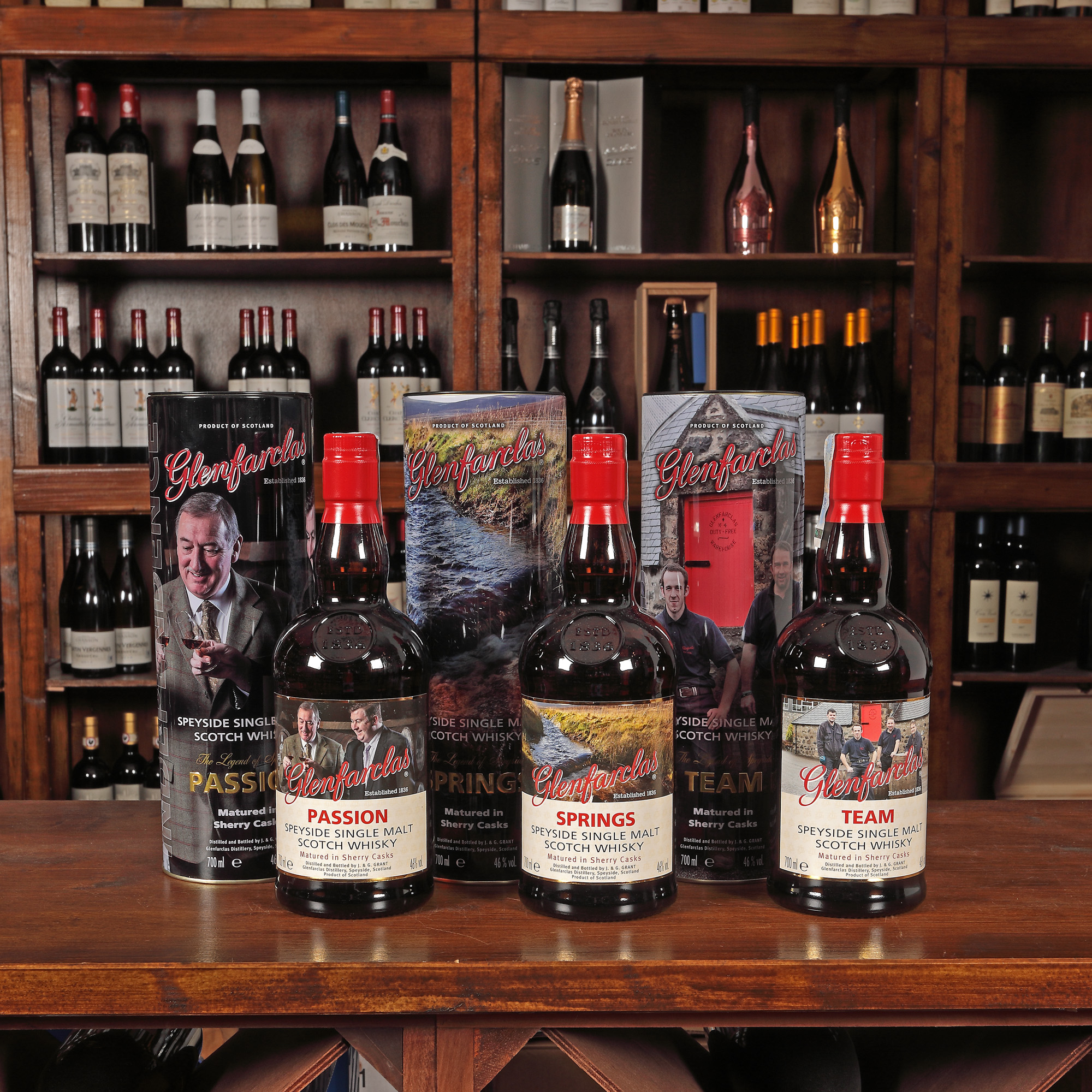 219. Colecție completă Glenfarclas Trilogy Team, Springs, Passion, 3st x 0,7l