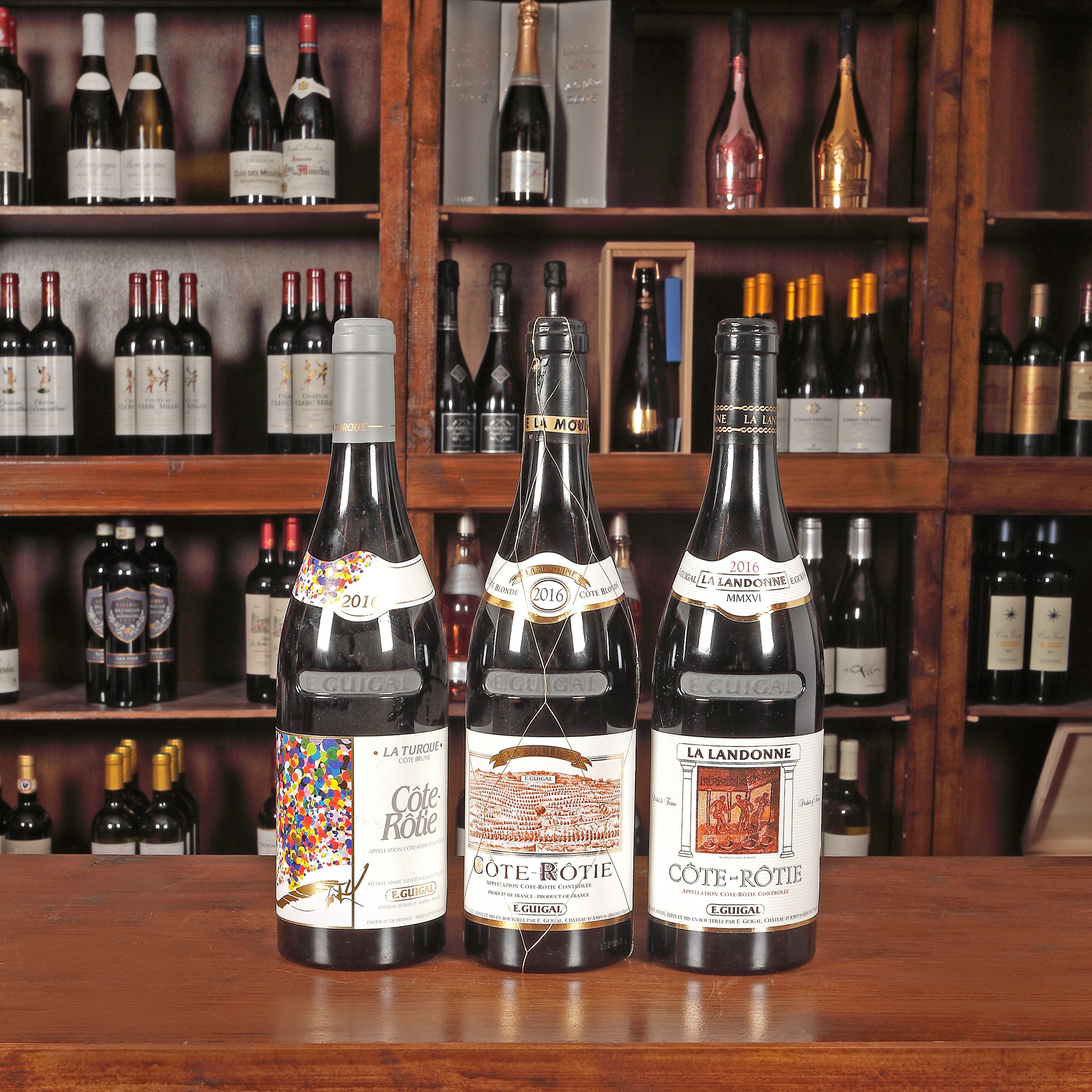 143. E. Guigal La Turque, La Landone, La Mouline, Cote Rotie, 2016, 3st x 0,75l