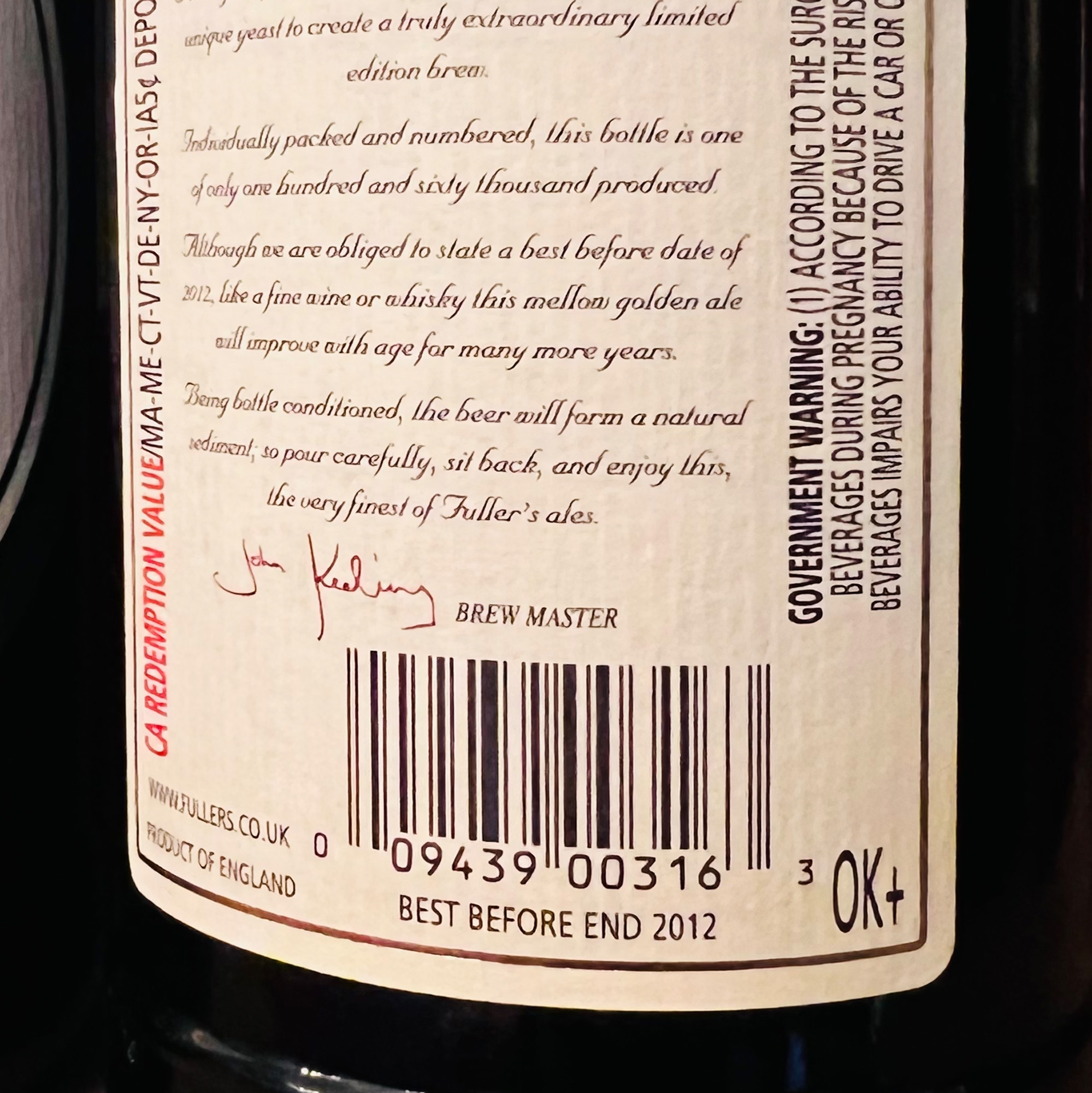 158. Fullers Vintage Ale, 2009, 24st x 0,5l