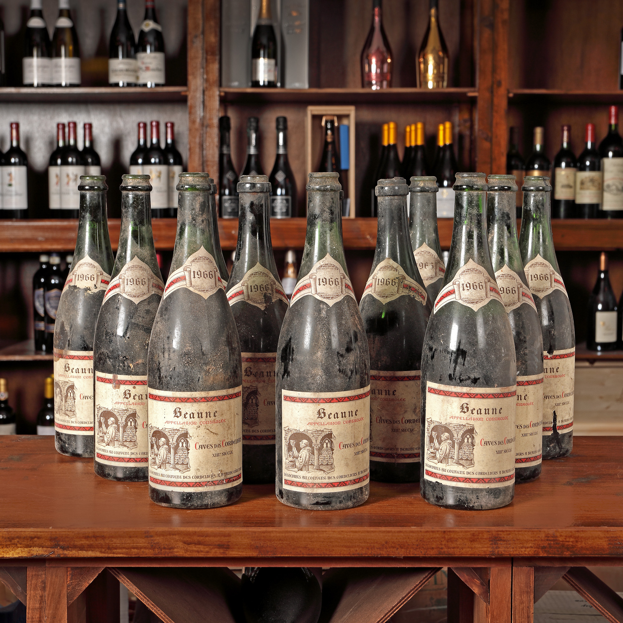 95. Lot de vinuri franțuzești foarte vechi Caves des Cordeliers, AOC Beaune, 1966, 12st x 0,70l