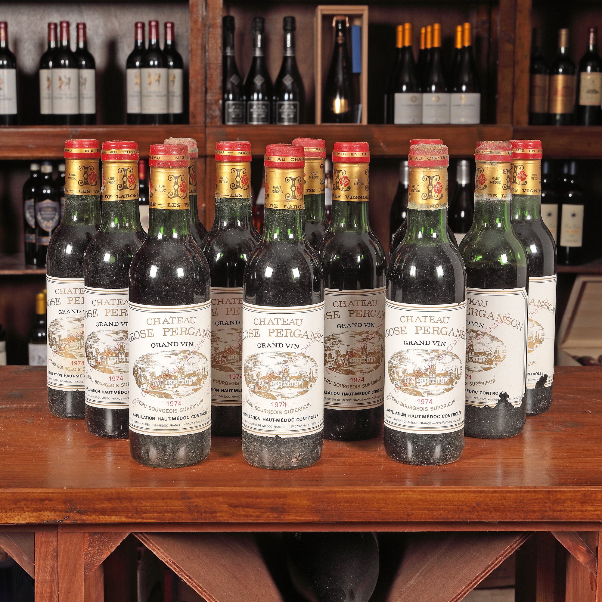 105. Lot de vinuri roșiii franțuzești, Château Larose Perganson, AOC Haut-Médoc anii 1974, 12st x 0,375l