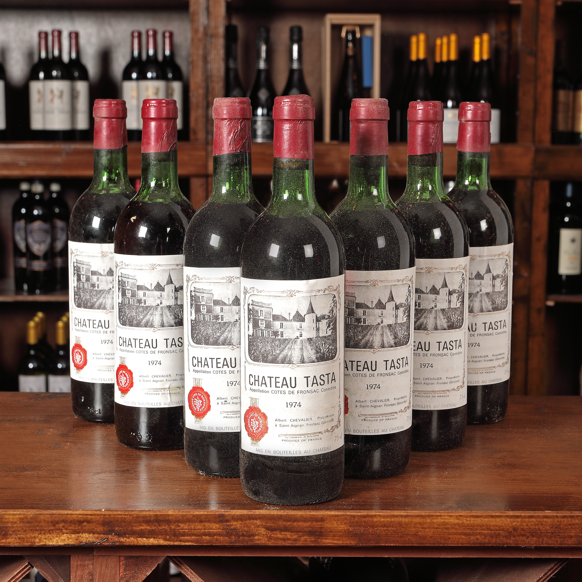 112. Lot de vinuri vechi franțuzești, Château Tasta, AOC Fronsac, 1974, 10st x 0,73