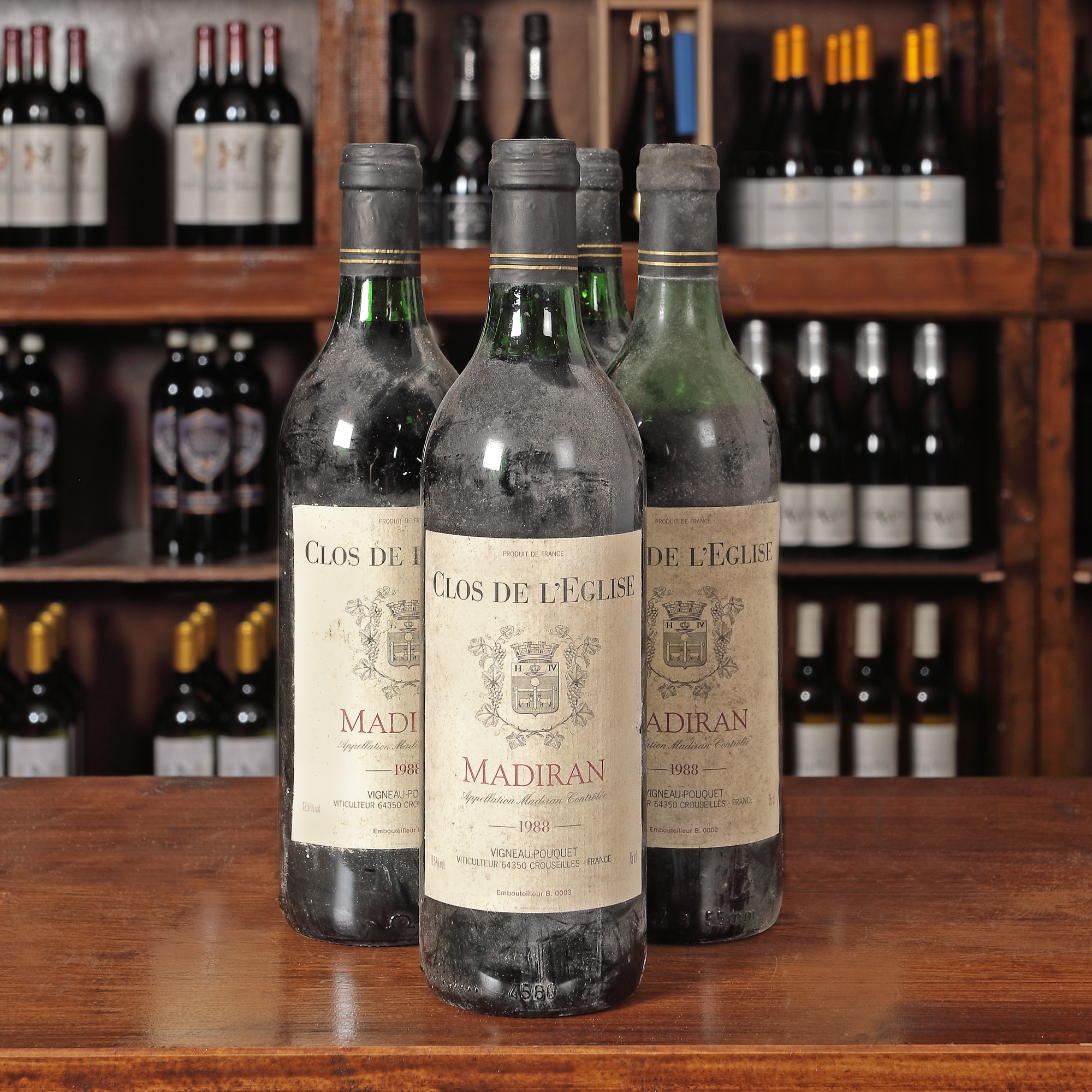 108. Lot de vinuri vechi franțuzești, Clos de L'Eglise, AOC Madiran, 1988, 6st x 0,75l