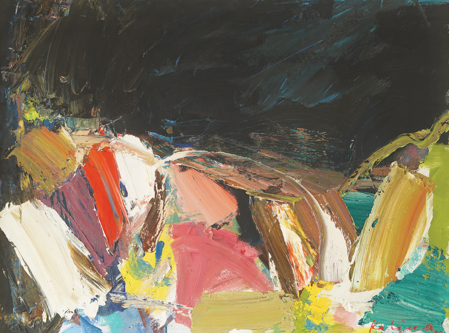 signirano dolje desno, crvenom, "Kalina"