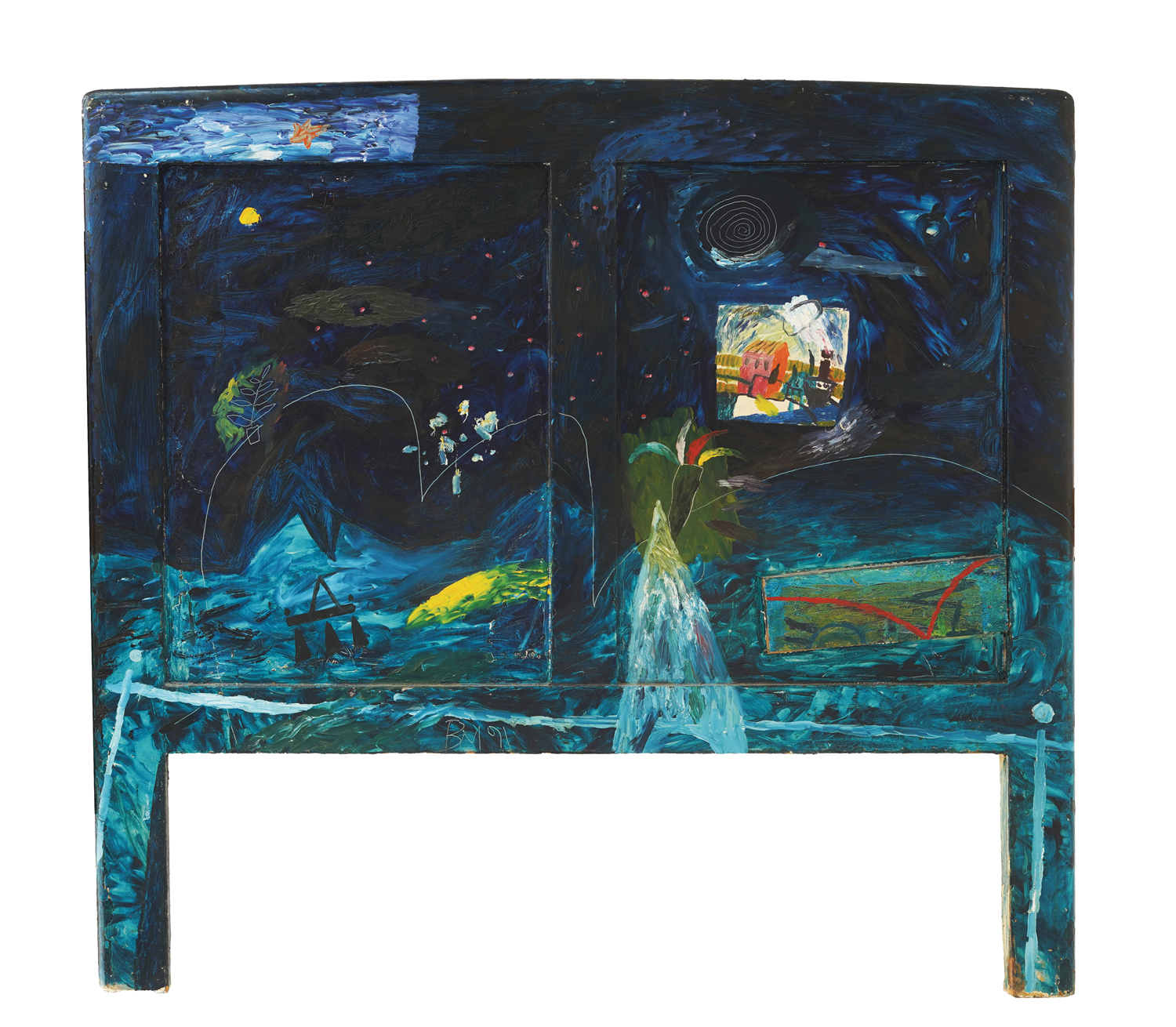 signirano dolje sredina, urezano, "BM (19)91"; signirano datirano i naslovljeno na poleđini, plavom, "BM, NA DNU BAJKE, 1991"