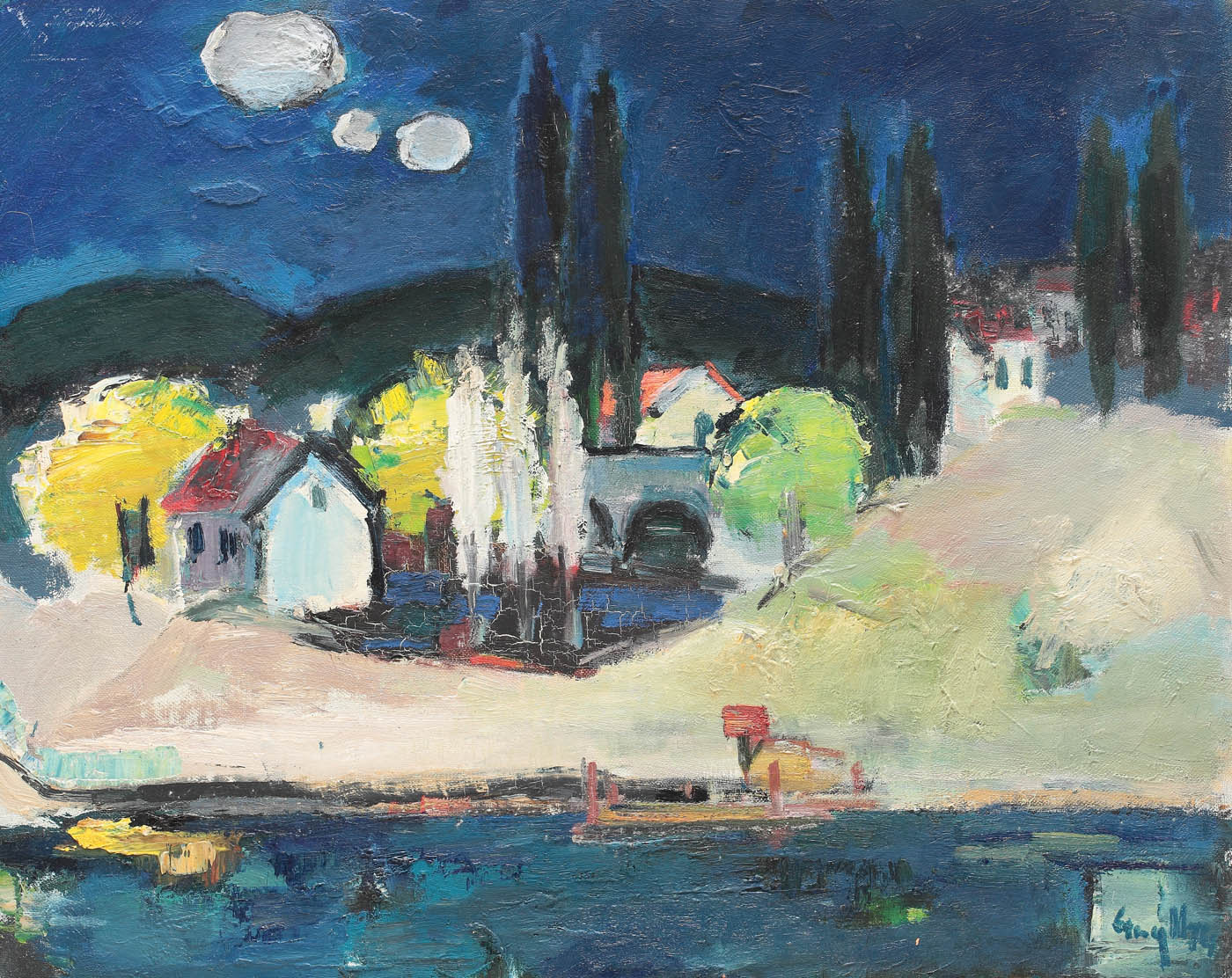 signed and dated bottom right, in blue, Gng. V., (19)74