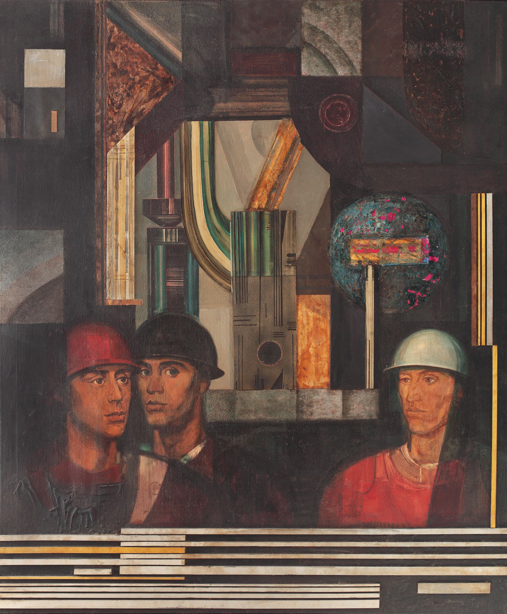 signed and dated bottom right, in grey, Bedivan, (19)69, signed and titled on the back, in orange, Bedivan Petre, "Laminor"