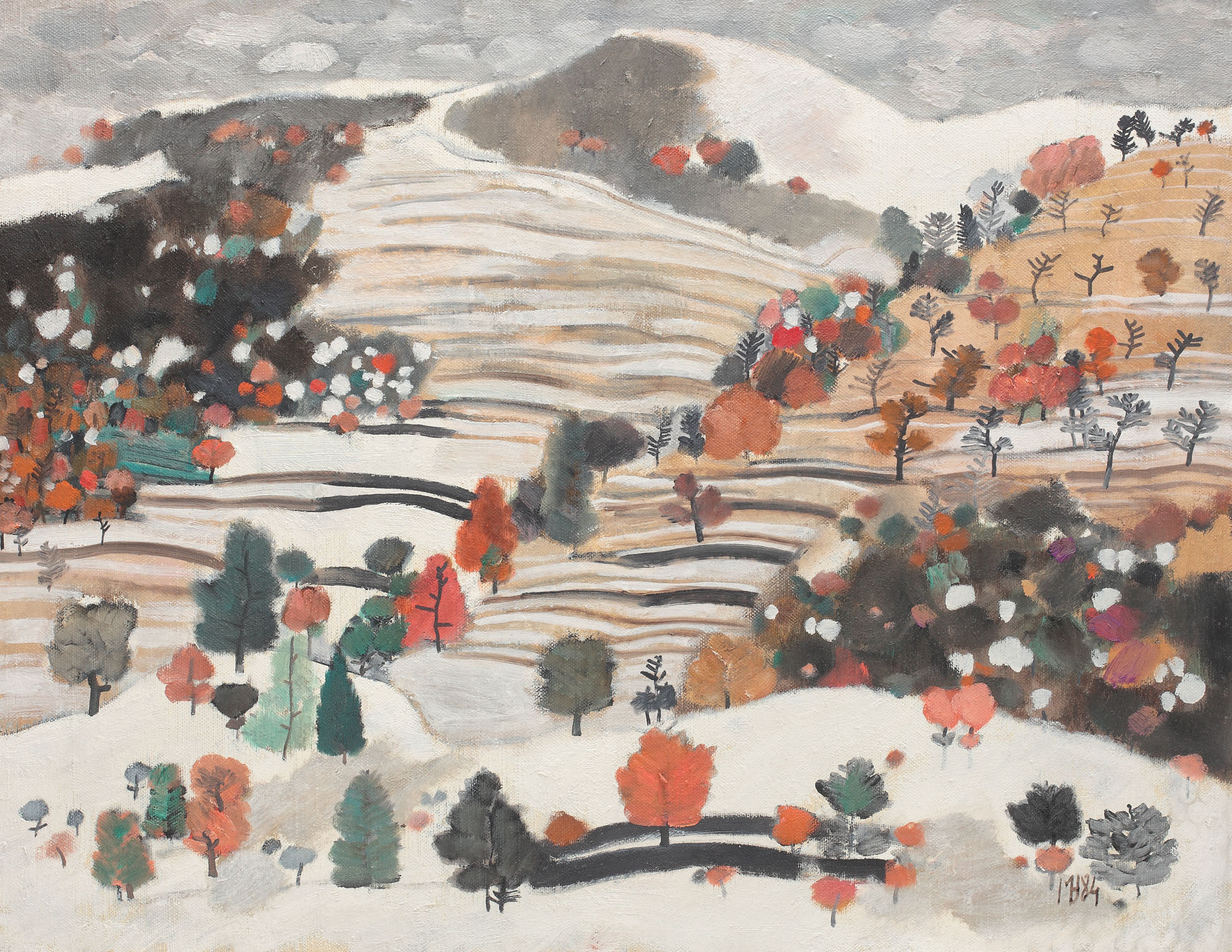 signed and dated bottom right, in black, MV, (19)84