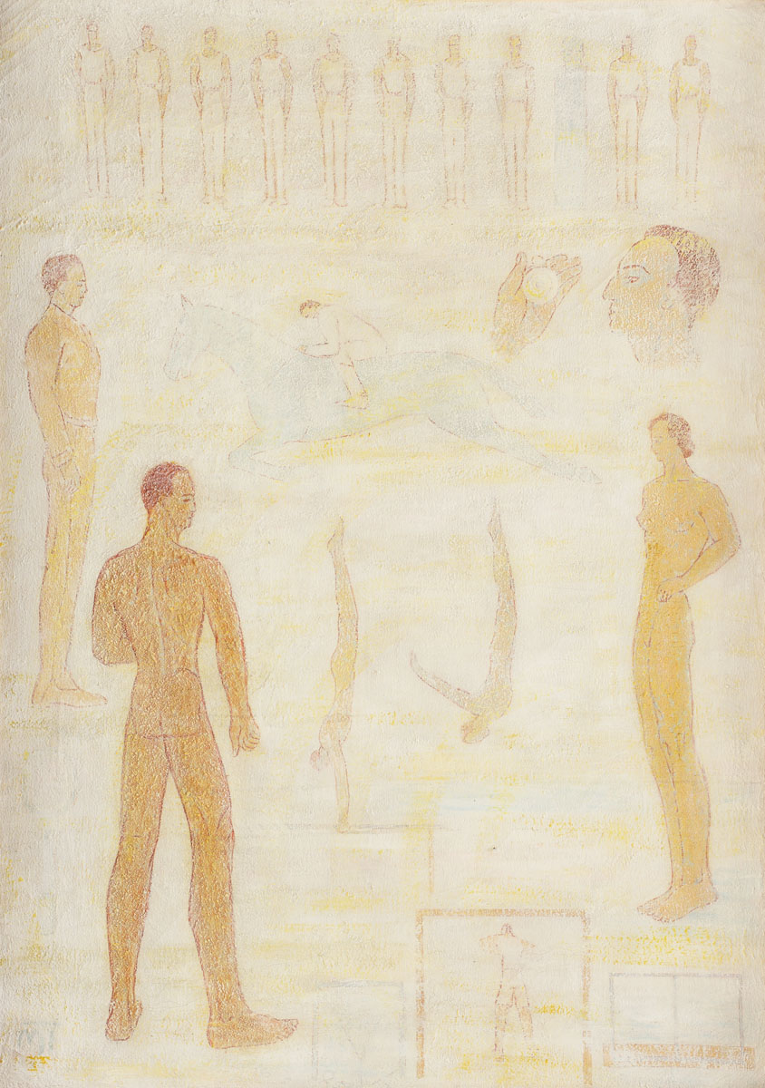 signed bottom left, in blue, MT