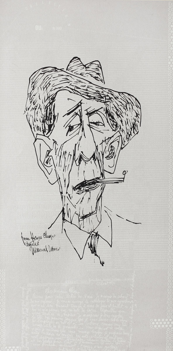 signed bottom right, in pencil, Marcel Ianco; dedicated on the left side, "Pour Henri Chopin, Amitié Marcel Ianco"
