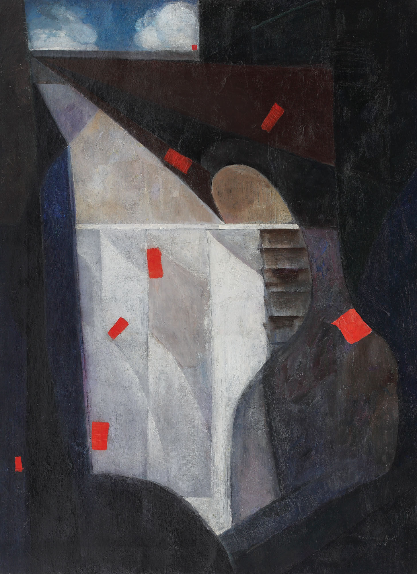 signed and dated bottom right, in white, Bedivan Mala, 1974