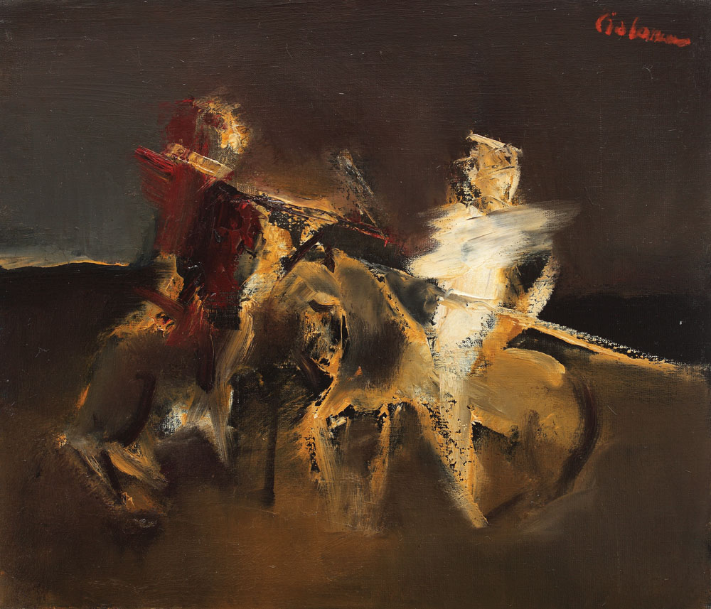 signed upper right, in red, Ciobanu