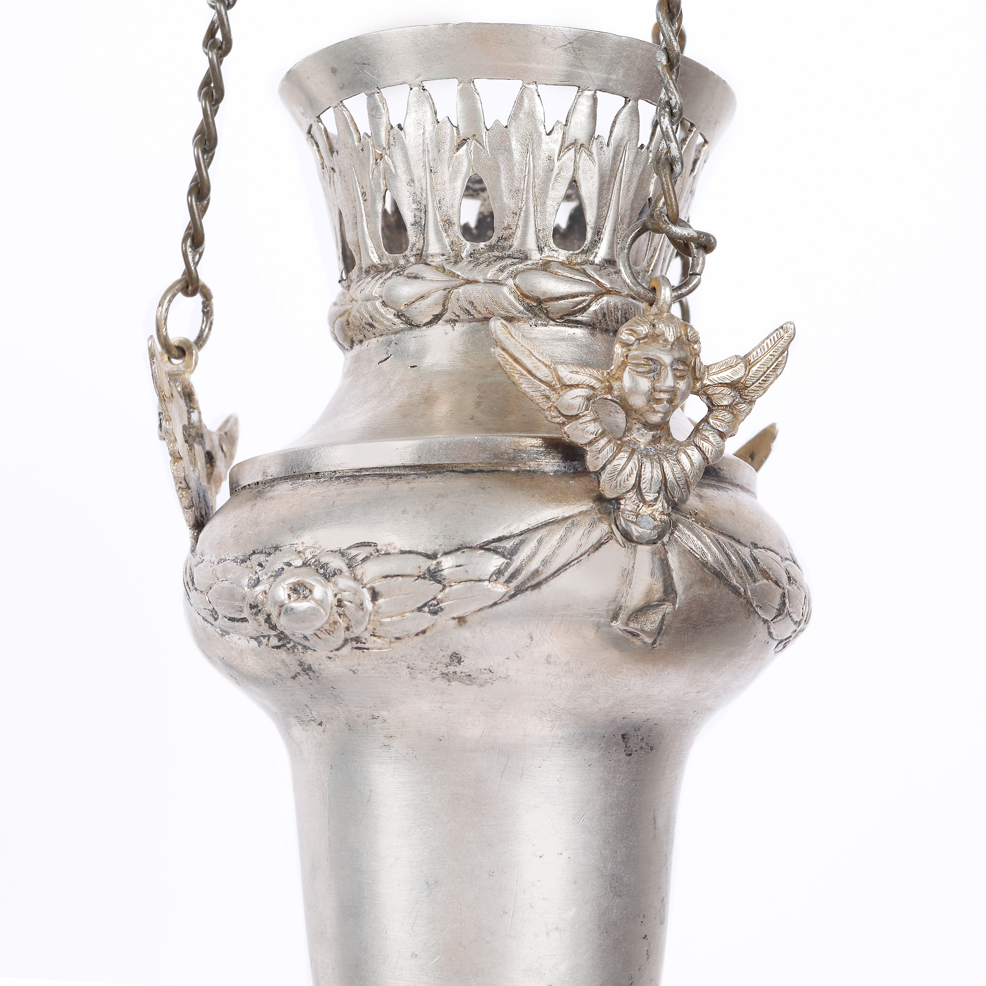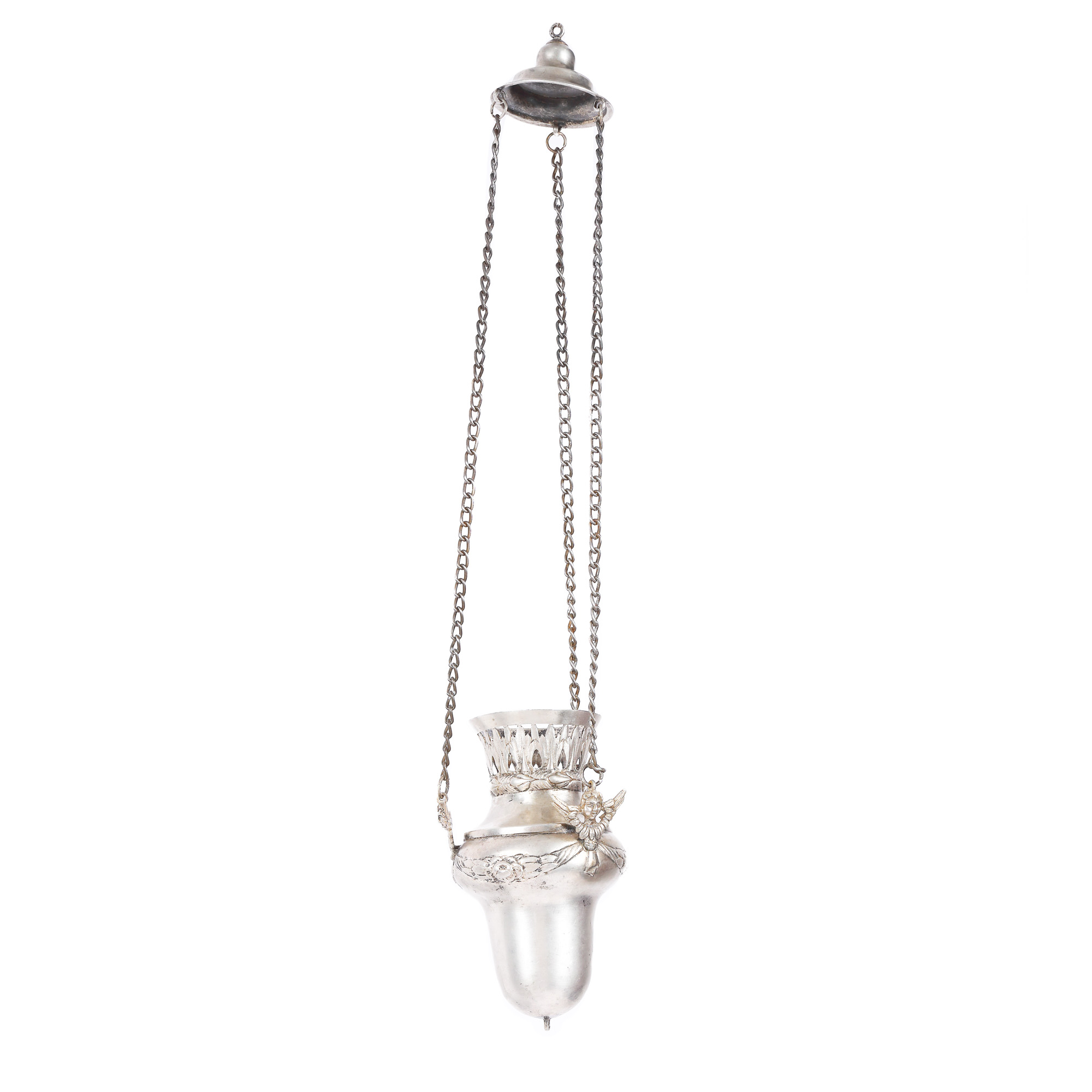 72. Candelă din argint, bogat decorată și purtând stema Moldovei, gravată cu inițialele domnitorului Mihail Grigore Sturdza, probabil Iași, cca. 1842, realizată pentru ctitoria sa din Târgul Mihăileni, piesă de excepție