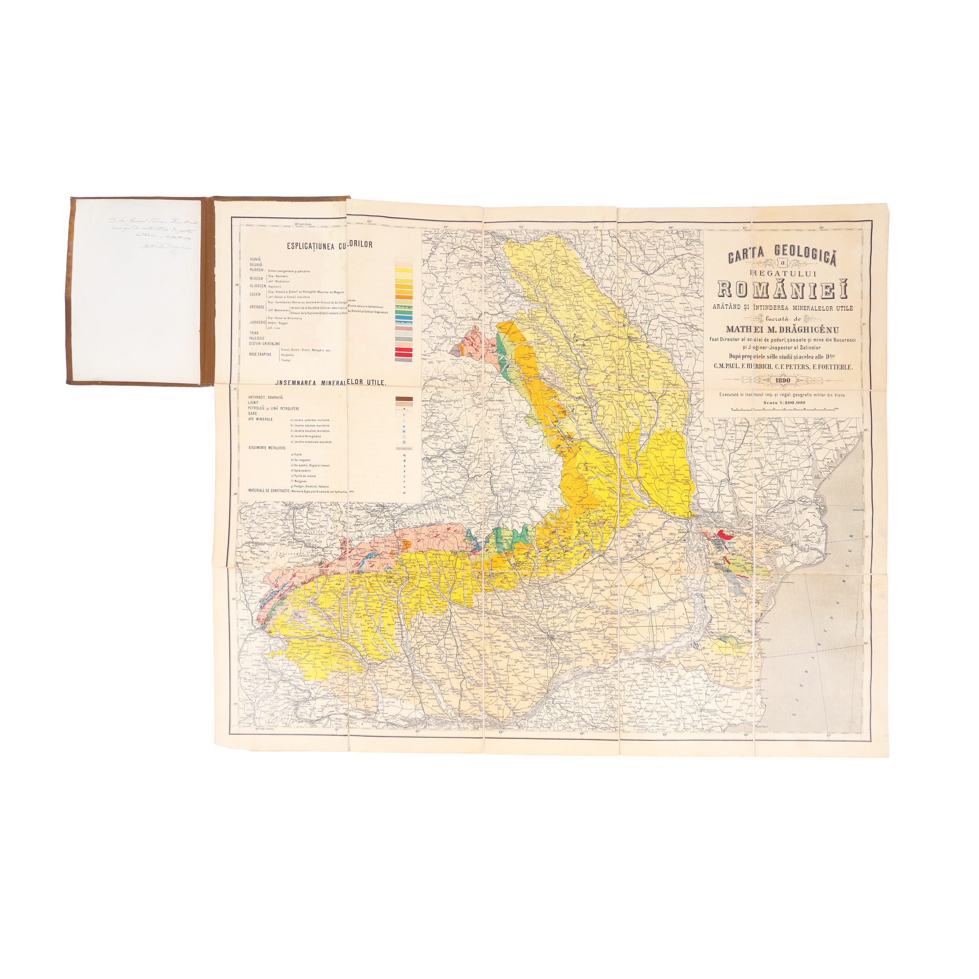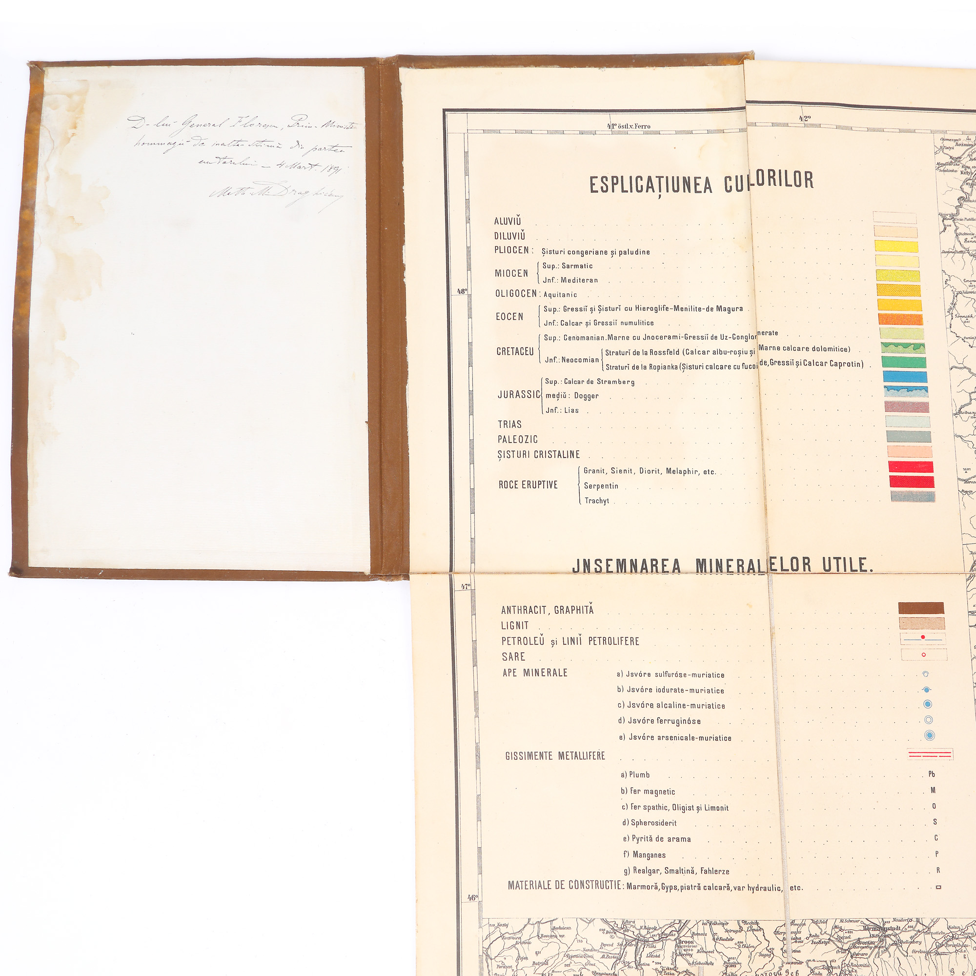 80. Hartă geologică ”România mică”, de Matei Drăghiceanu, 1890, cu dedicația și semnătura olografă a autorului către generalul Ioan Emanoil Florescu