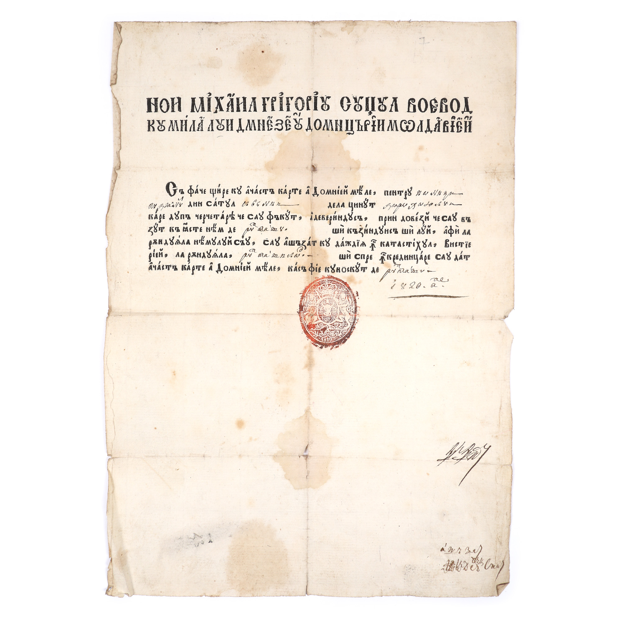 85. Hotărâre (carte) emisă de ultimul principe fanariot al Moldovei Mihail Grigorie Suțu (1819-1821), Iași, 1820