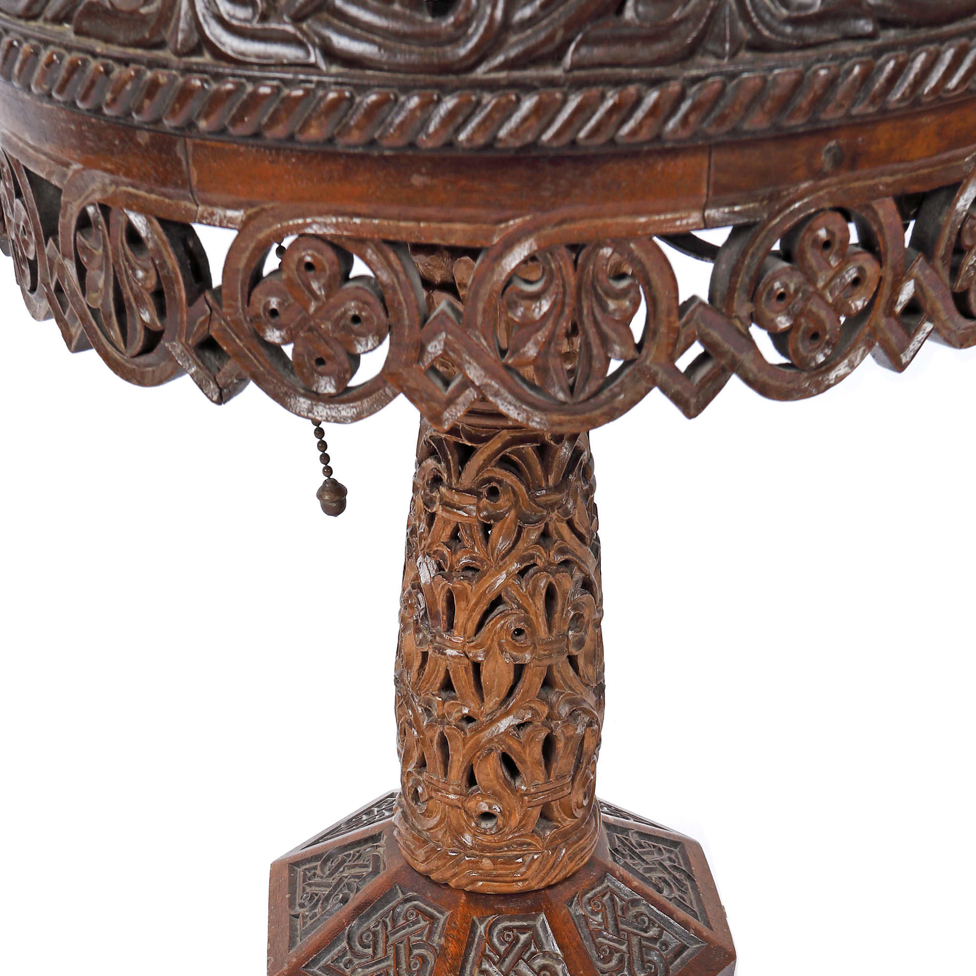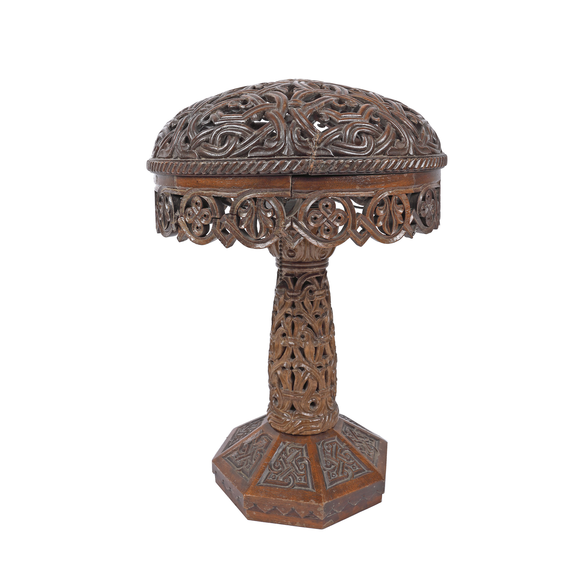 79. Lampă sculptată în stil Neo-Brâncovenesc, posibil produs de Atelierele Școlii de la Sinaia (având drept designer pe Regina Maria), anii 1920