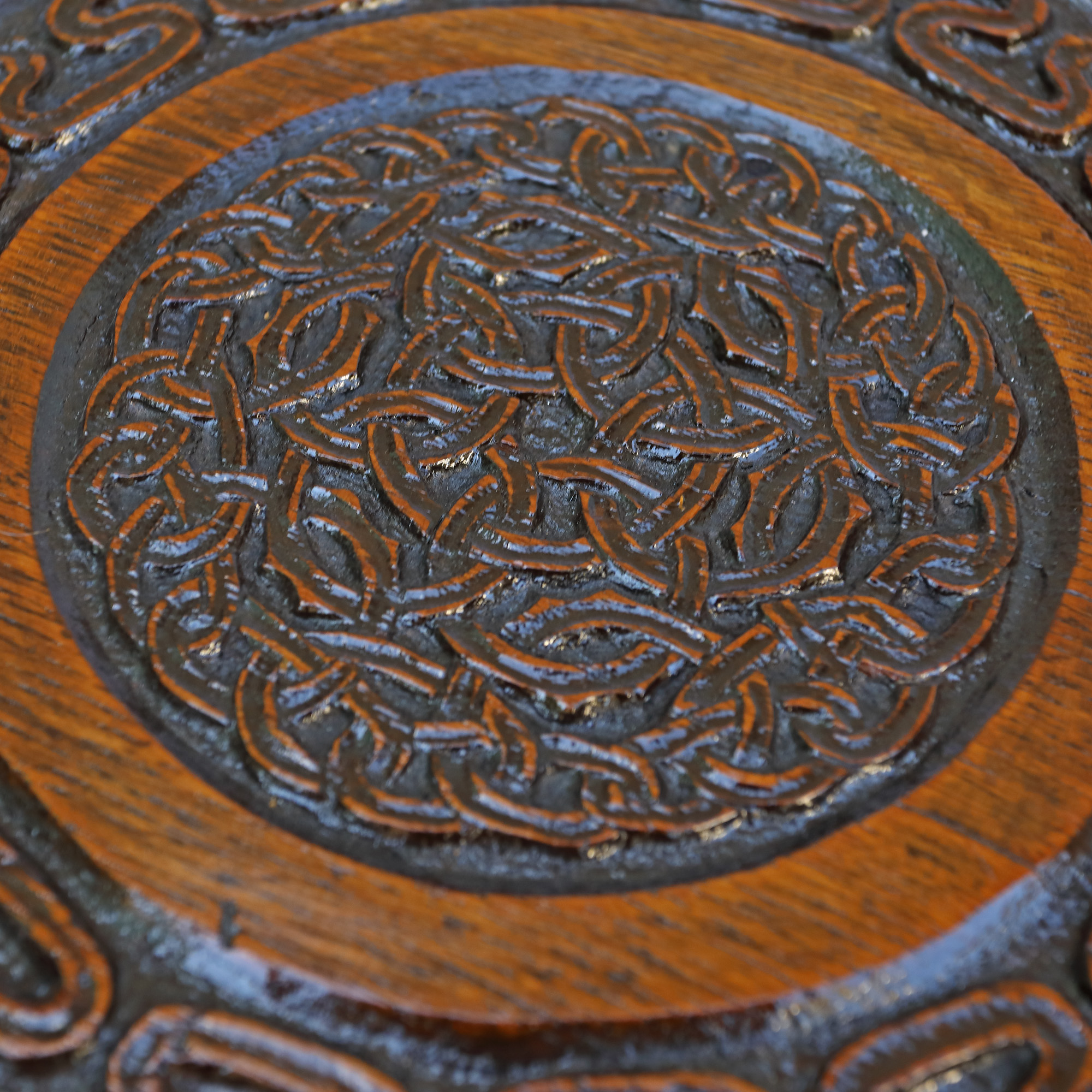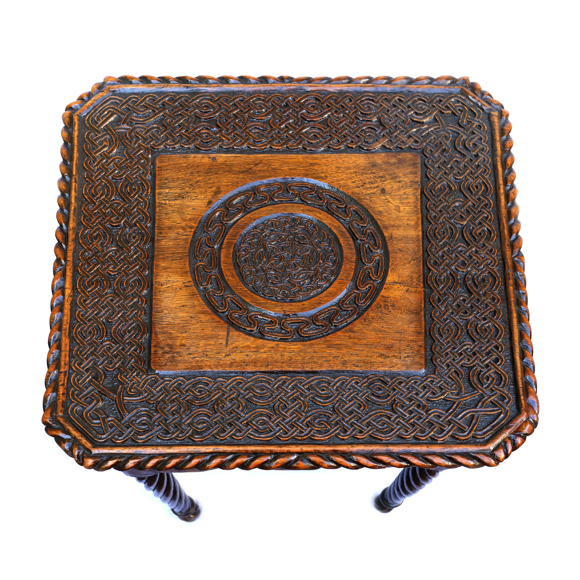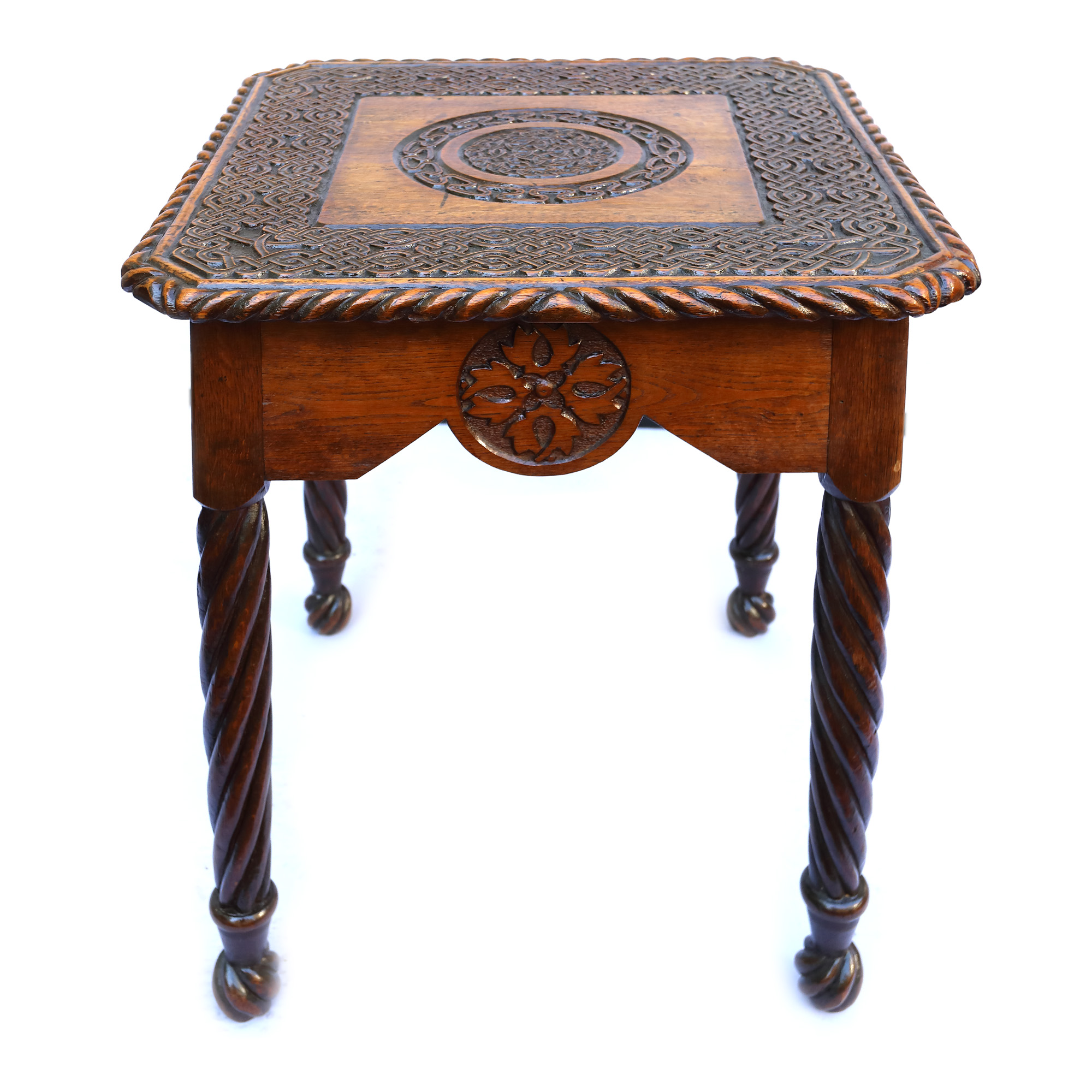 76. Măsuță sculptată în stil Neo-Românesc, cu decor entrelacs, prima jumătate a sec. XX