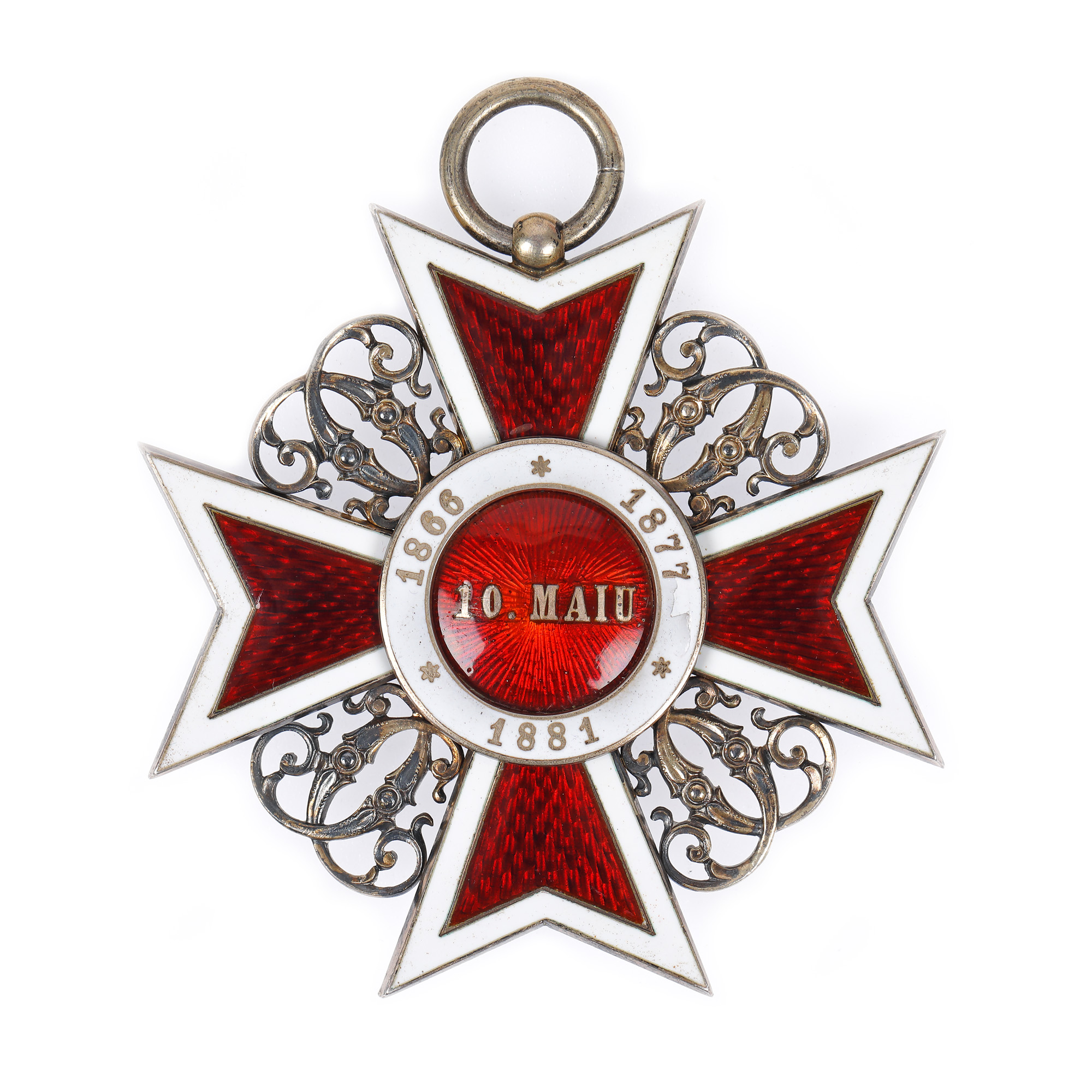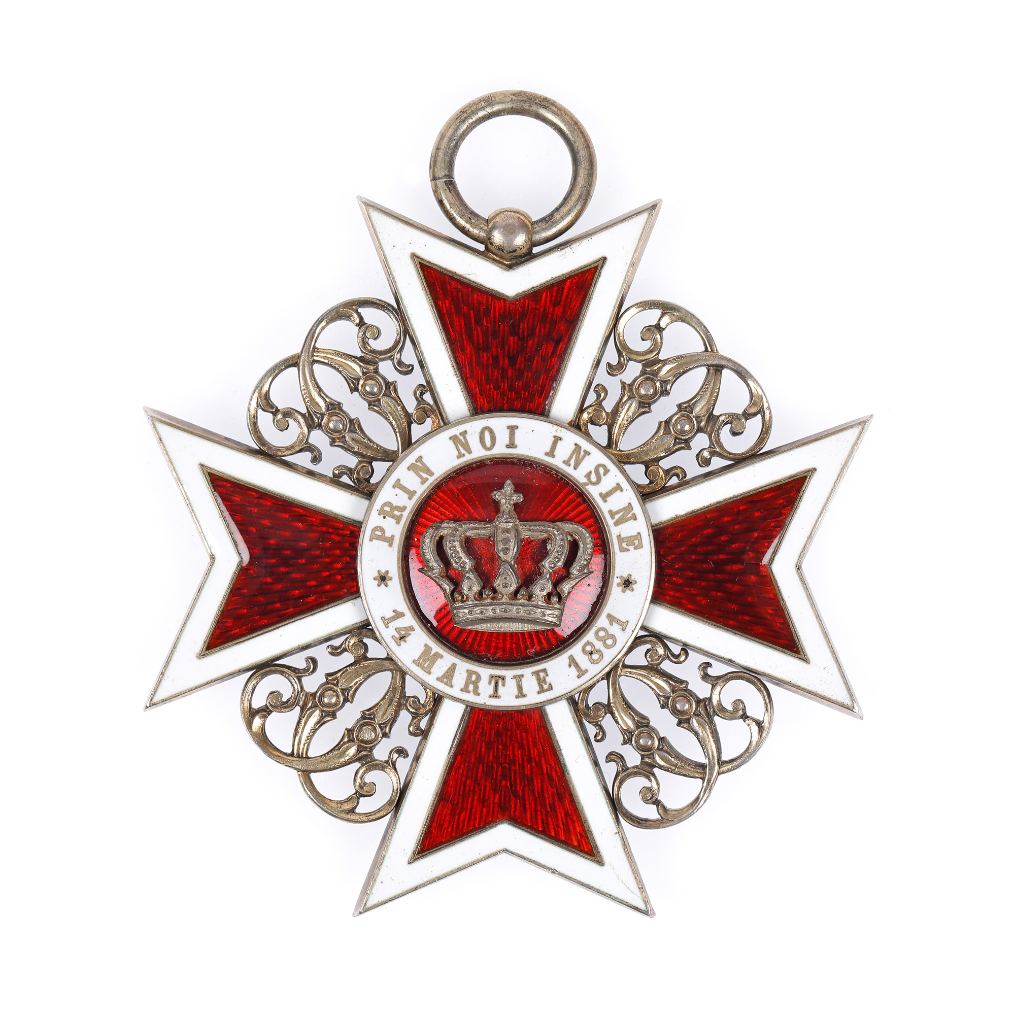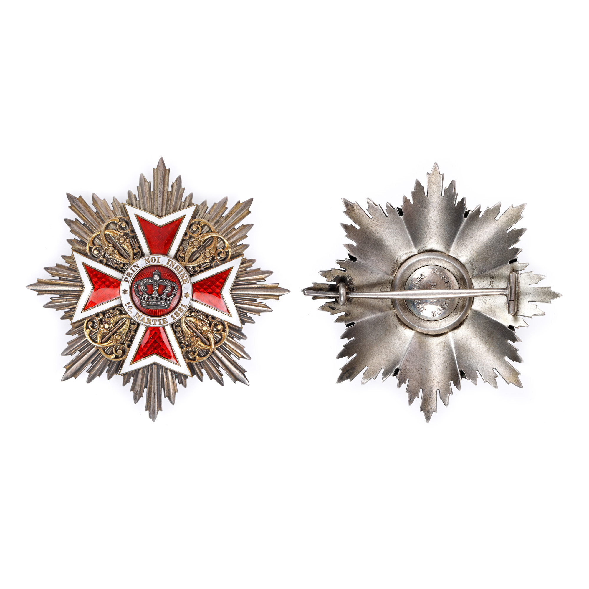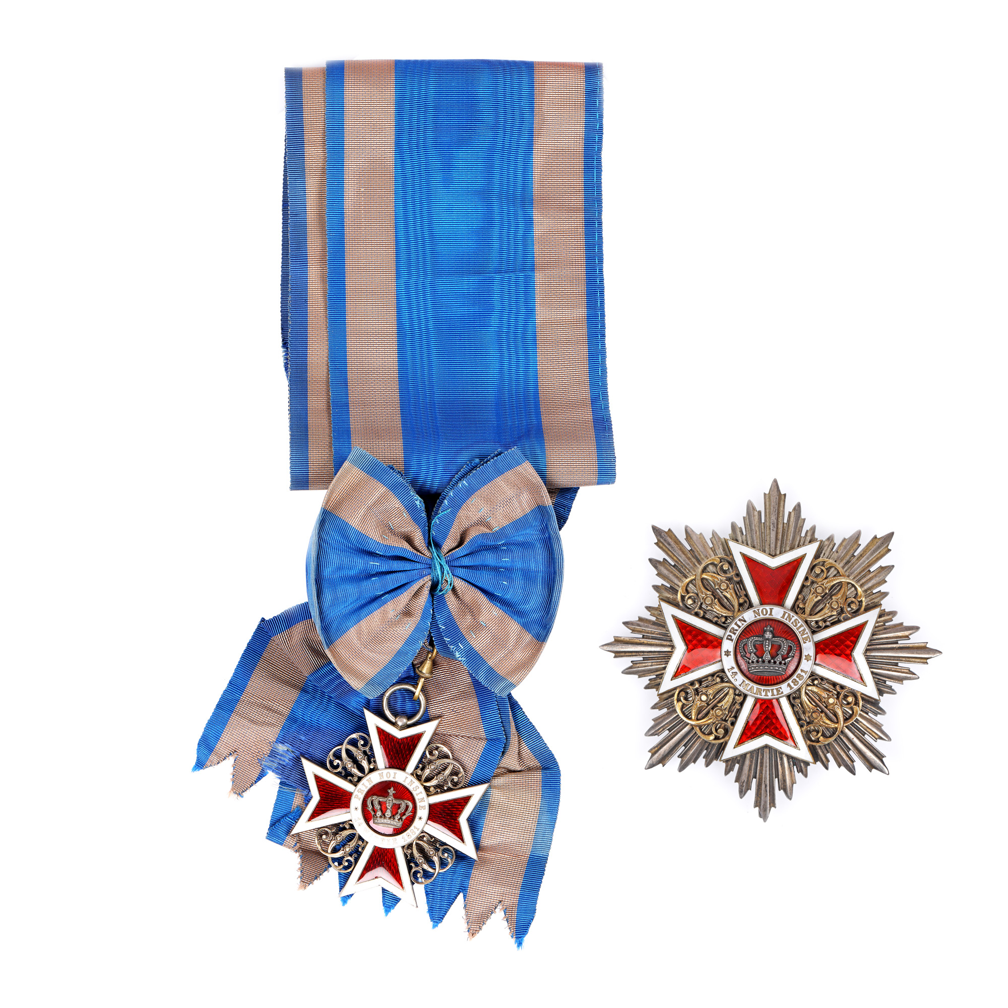 93. Ordinul ”Coroana României”, în grad de Mare Cruce, format din însemn, placă din argint aurit și eșarfă