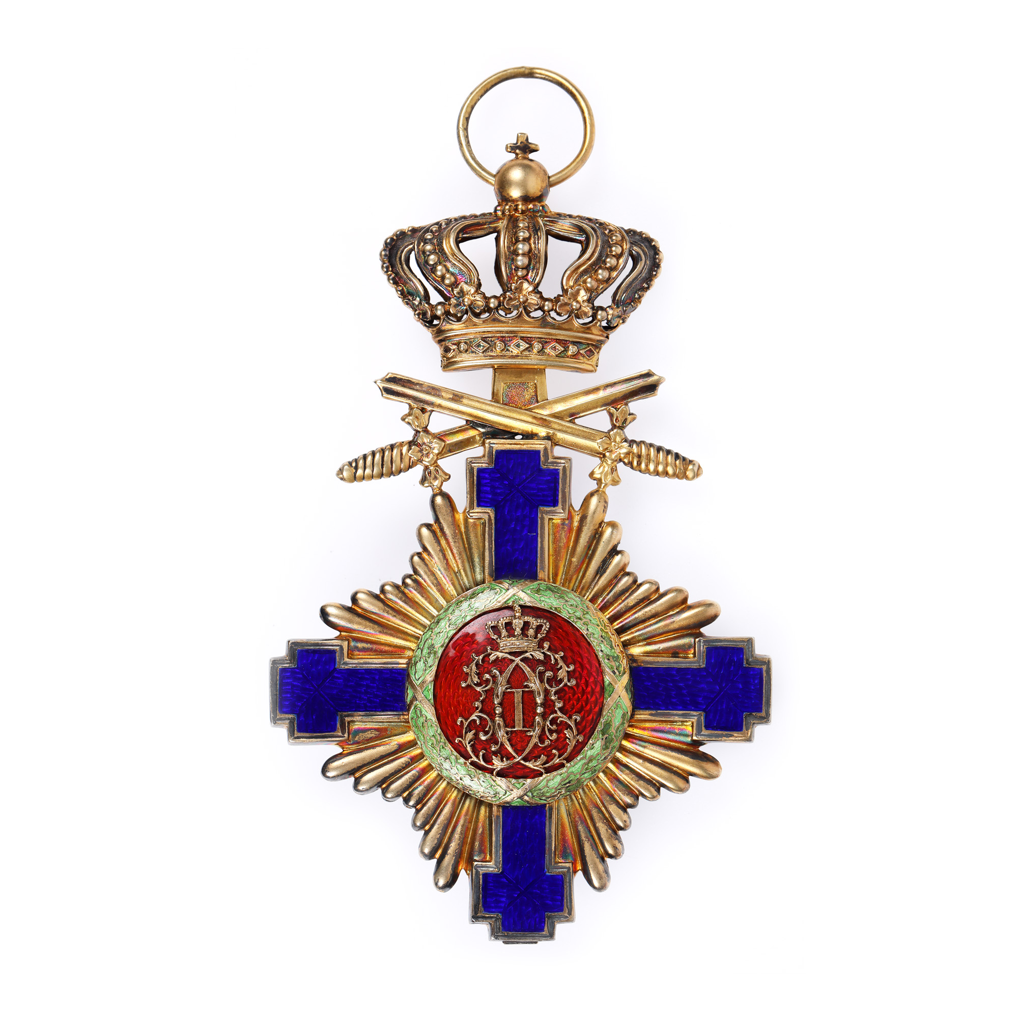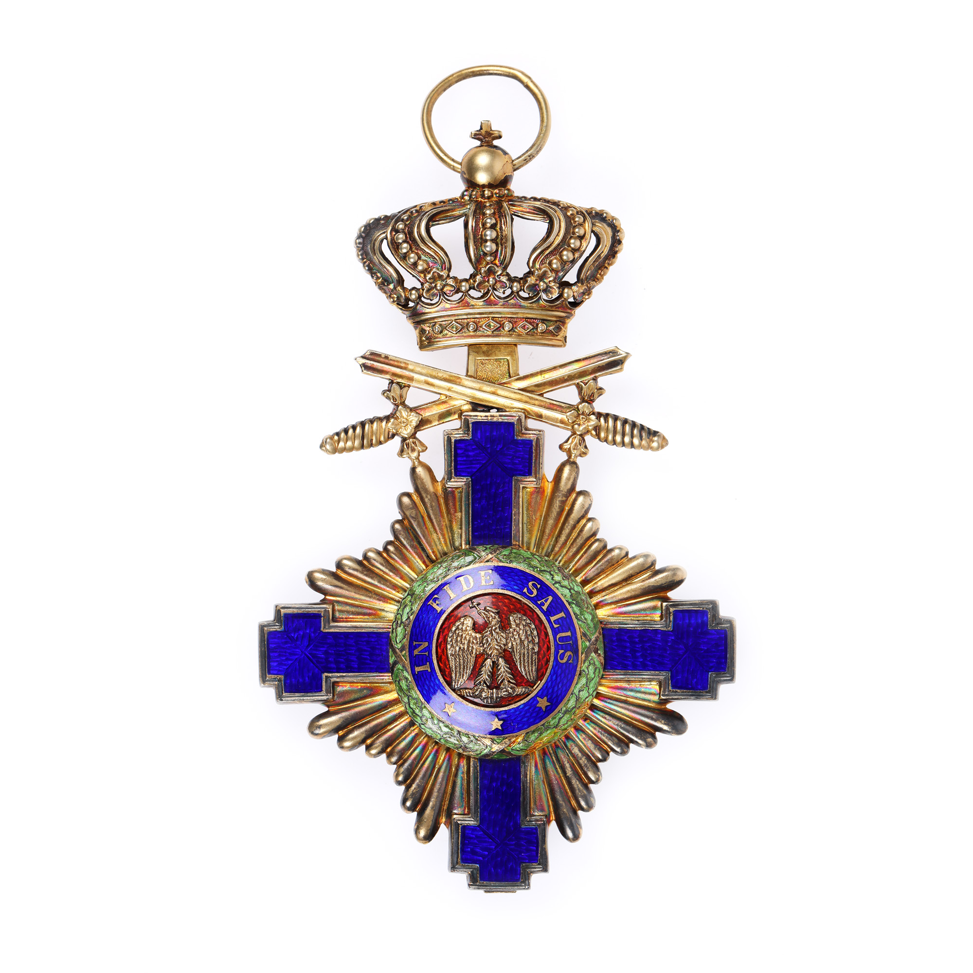 Ordinul Național Steaua României a fost instituit pe data de 10 mai 1877, fiind primul Ordin acordat oficial de către statul român. Se acorda militarilor şi civilor pentru servicii deosebite aduse statului. Forma Însemnului a fost stabilită încă din timpul domniei lui Alexandru Ioan Cuza, fiind folosită la predecesorul acestei distincții, “Ordinul Unirii”. Acesta nu a fost instituit în timpul domniei lui Cuza din cauze externe ce ţineau de statutul ţării care era vasală a Imperiului Otoman. Pe aversul primului model se găsea o acvilă cruciată stând pe un sceptru și deviza Ordinului IN FIDE SALUS. Pe revers, în medalionul central, era cifra regelui Carol I. Între brațele crucii erau raze, iar de brațul superior era atașată coroana regală de al cărei inel se prindea panglica.