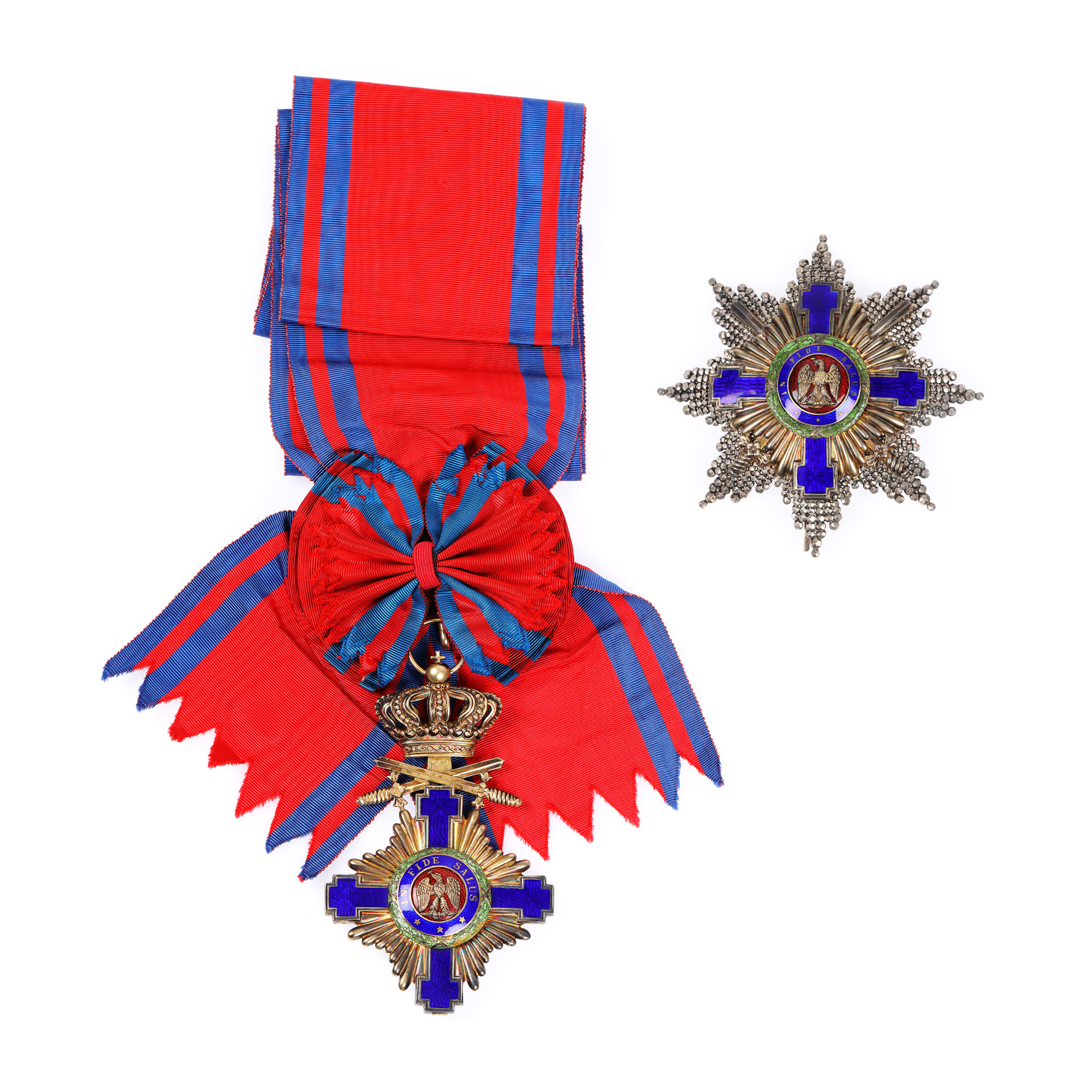 92. Ordinul ”Steaua României”, în grad de Mare Cruce, format din însemn, placă din argint aurit și eșarfă, piesă rară, de colecție