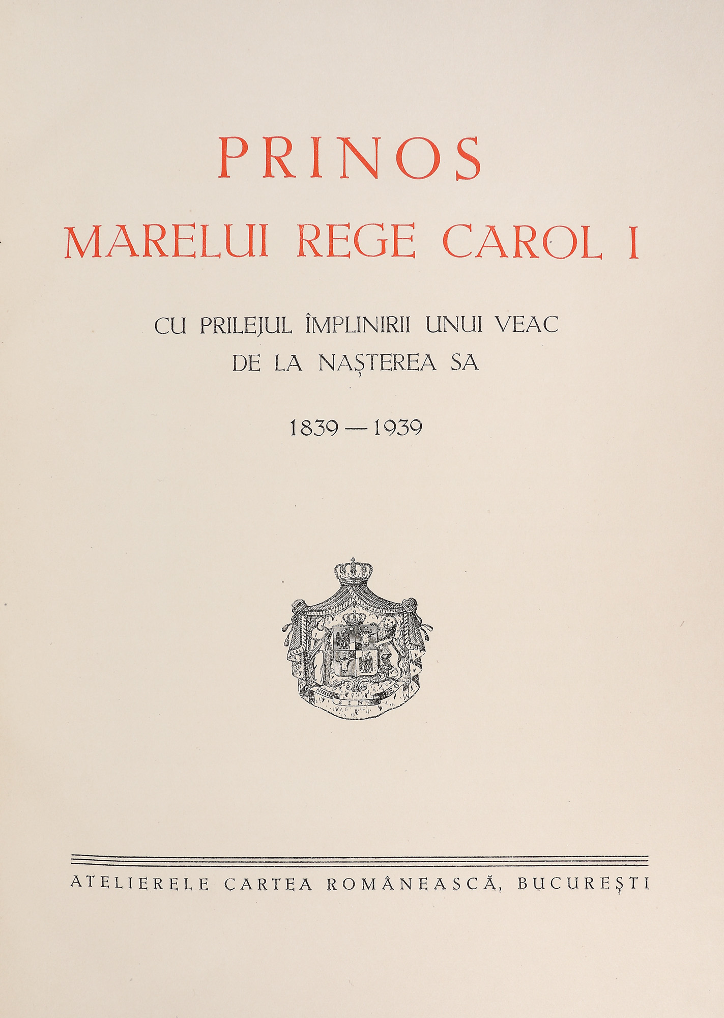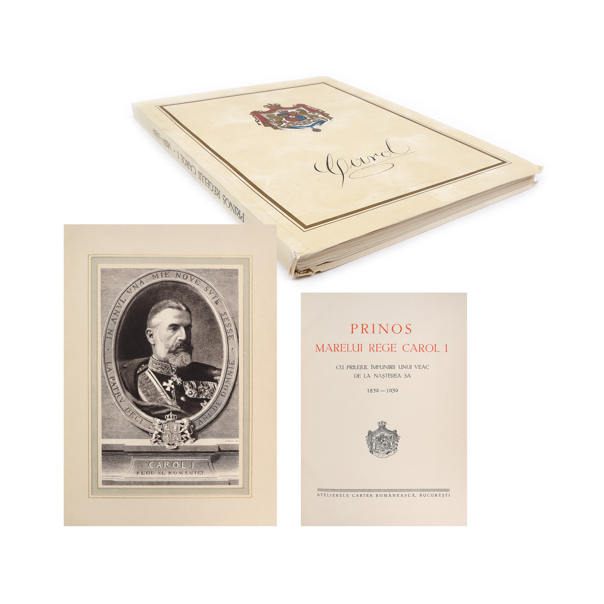 68. “Prinos Marelui Rege Carol I”, tipărită din ordinul generalului Victor Dombrovski, primar al Bucureştiului, cu ocazia împlinirii unui veac de la naşterea M.S. Regelui Carol I, Bucureşti, 1939, cu etuiul original