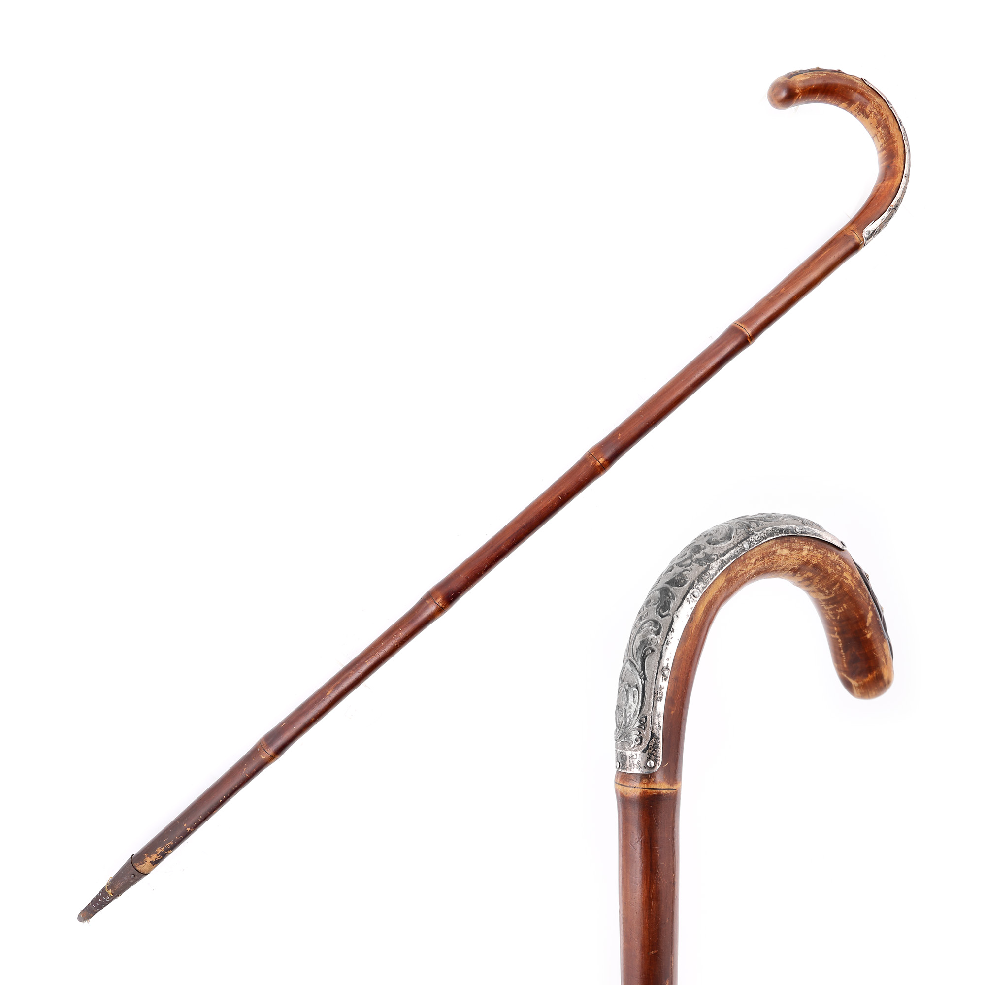 100. Baston din bambus, decorat cu vrejuri vegetale, prima jumătate a secolului XX