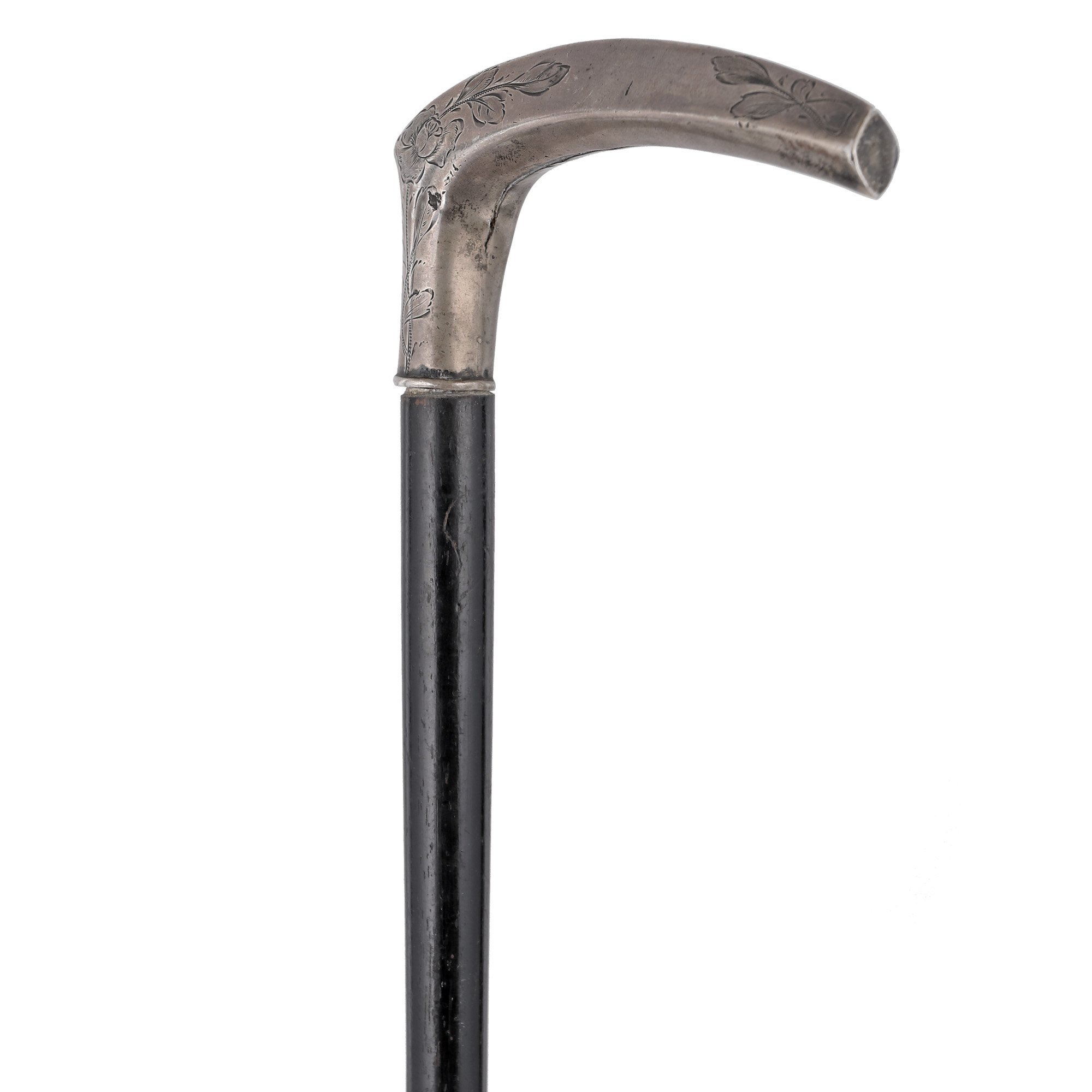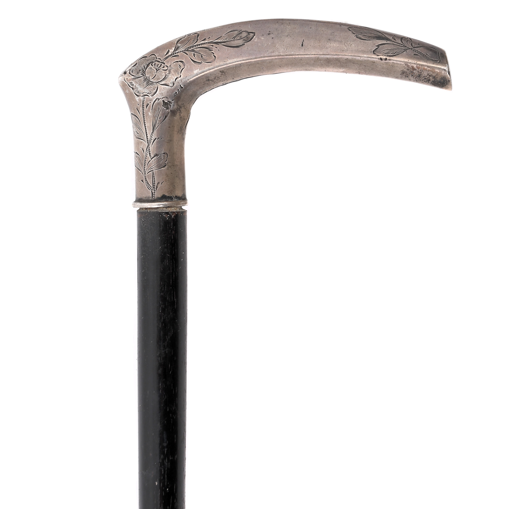 87. Baston din lemn, cu mâner din argint, prima jumătate a sec. XX