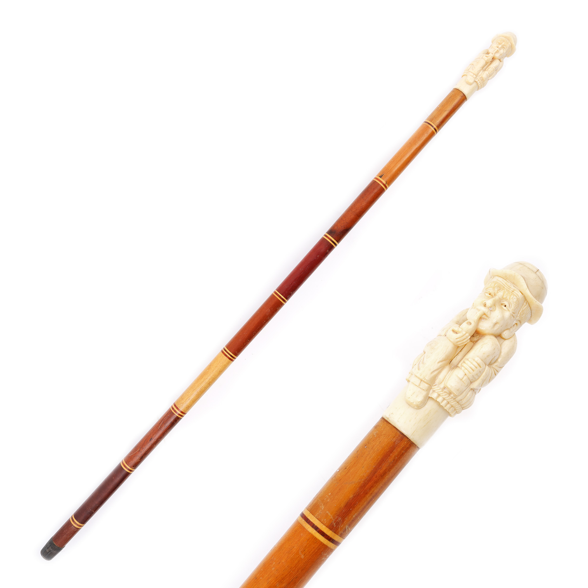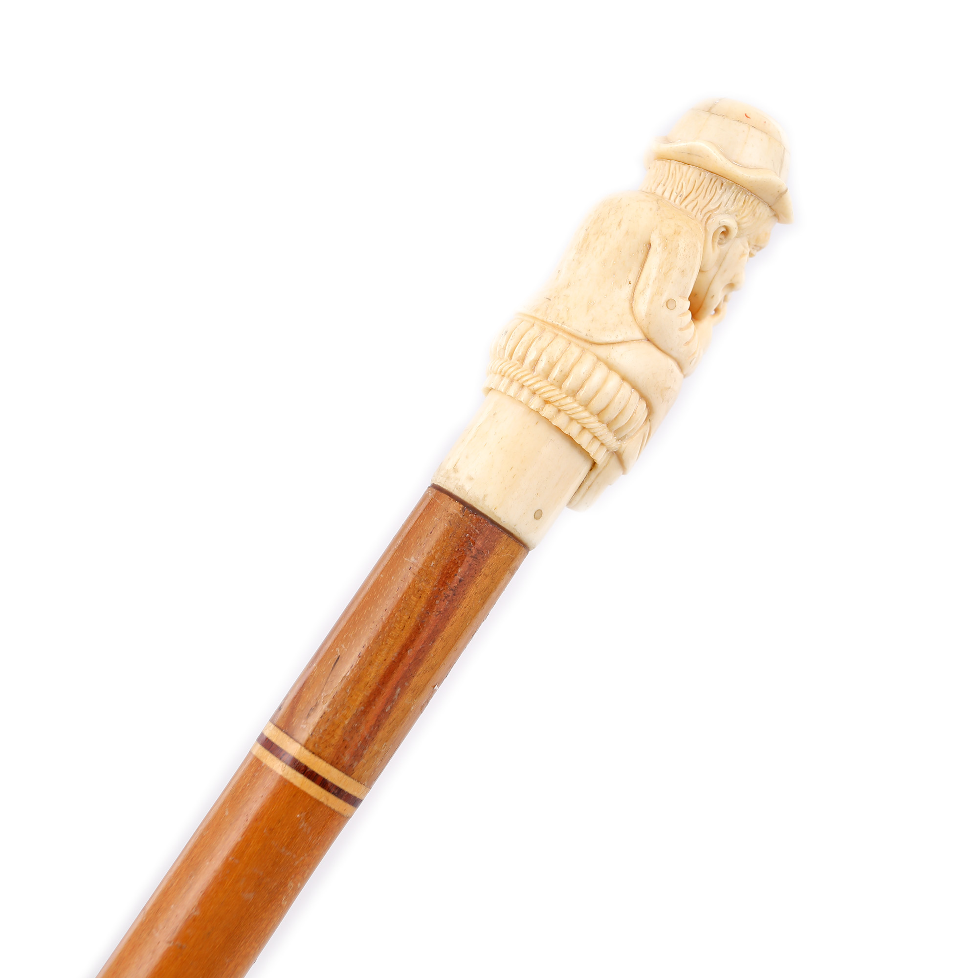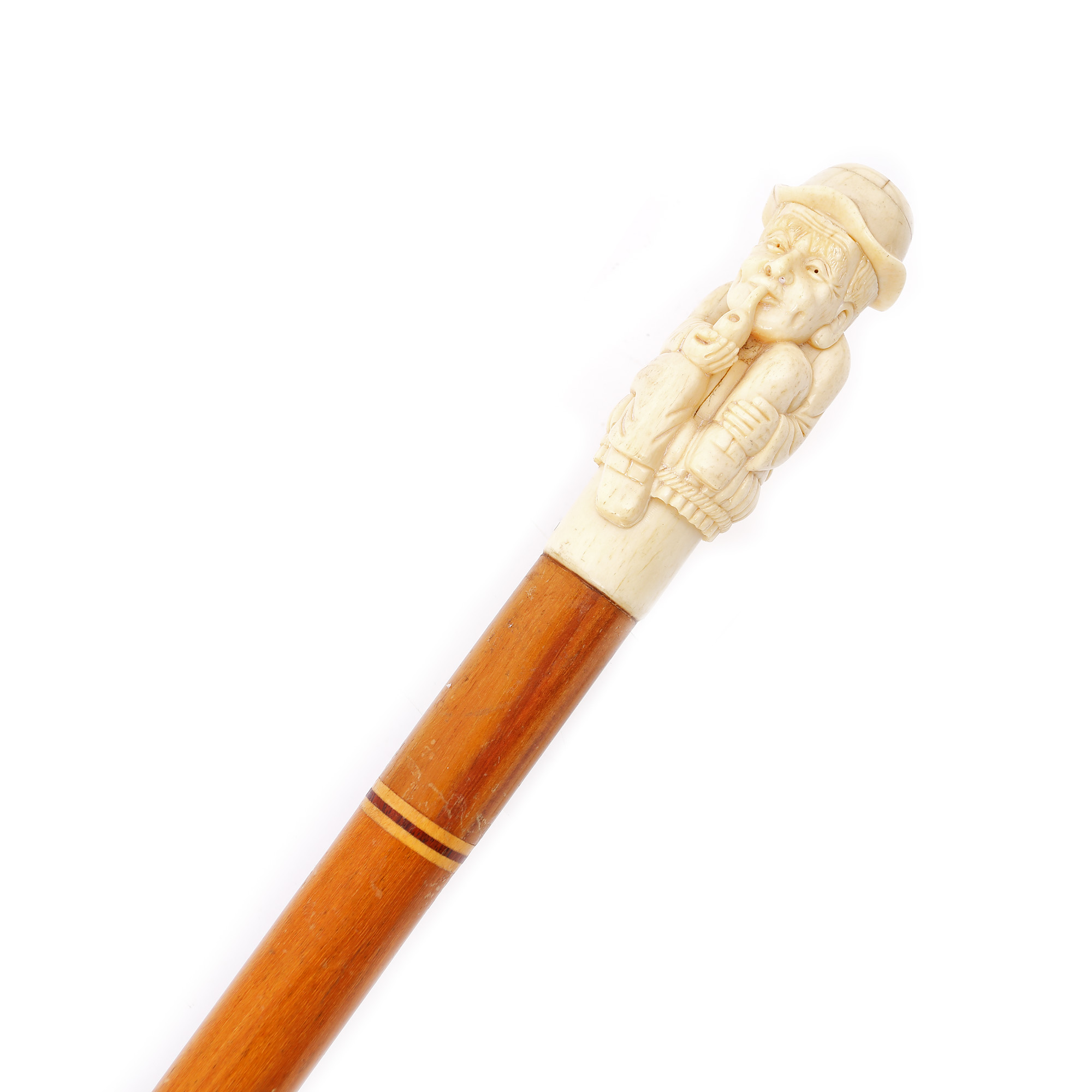 79. Baston din lemn, cu mâner din fildeș sculptat în forma unui marinar fumând pipă, prima jumătate a sec. XX