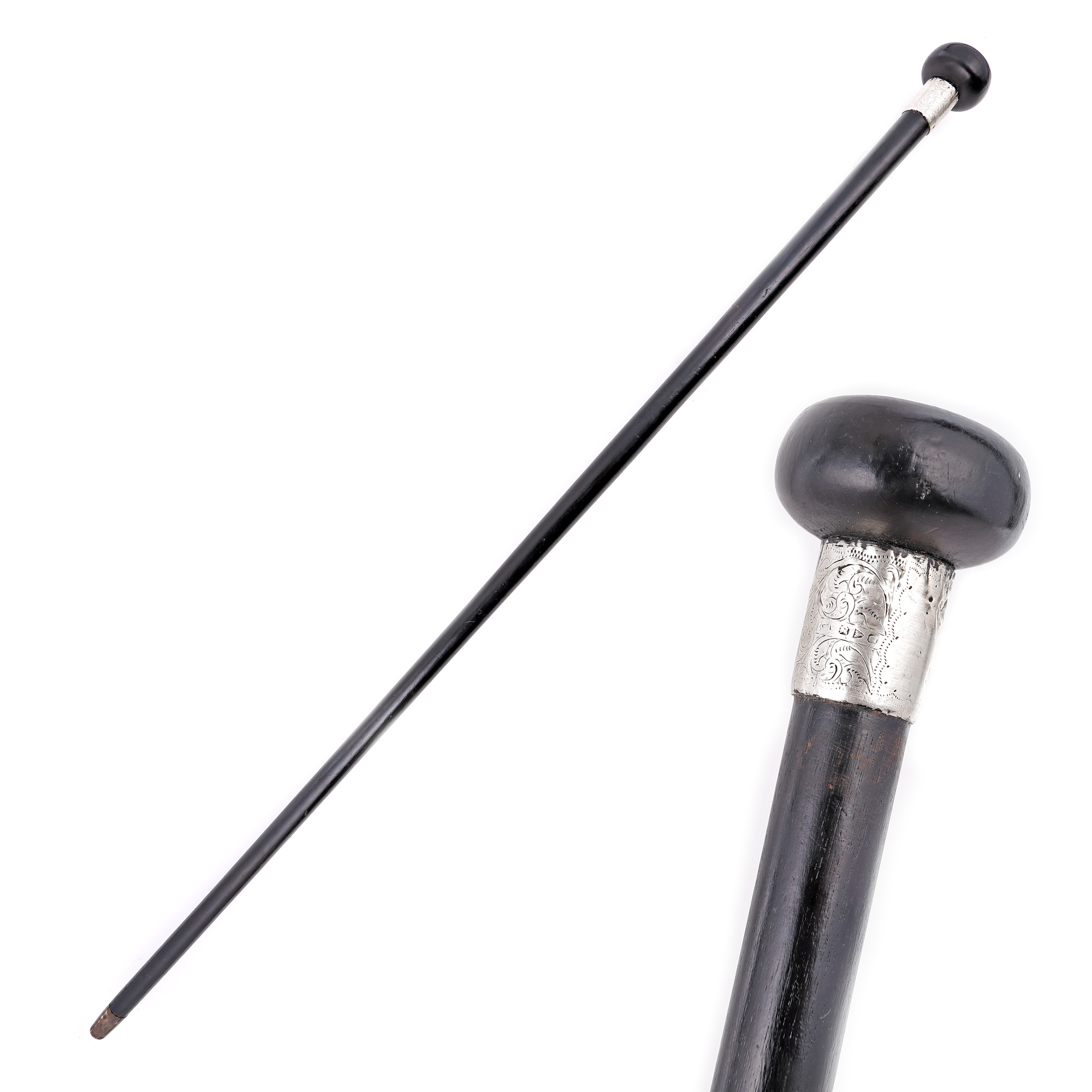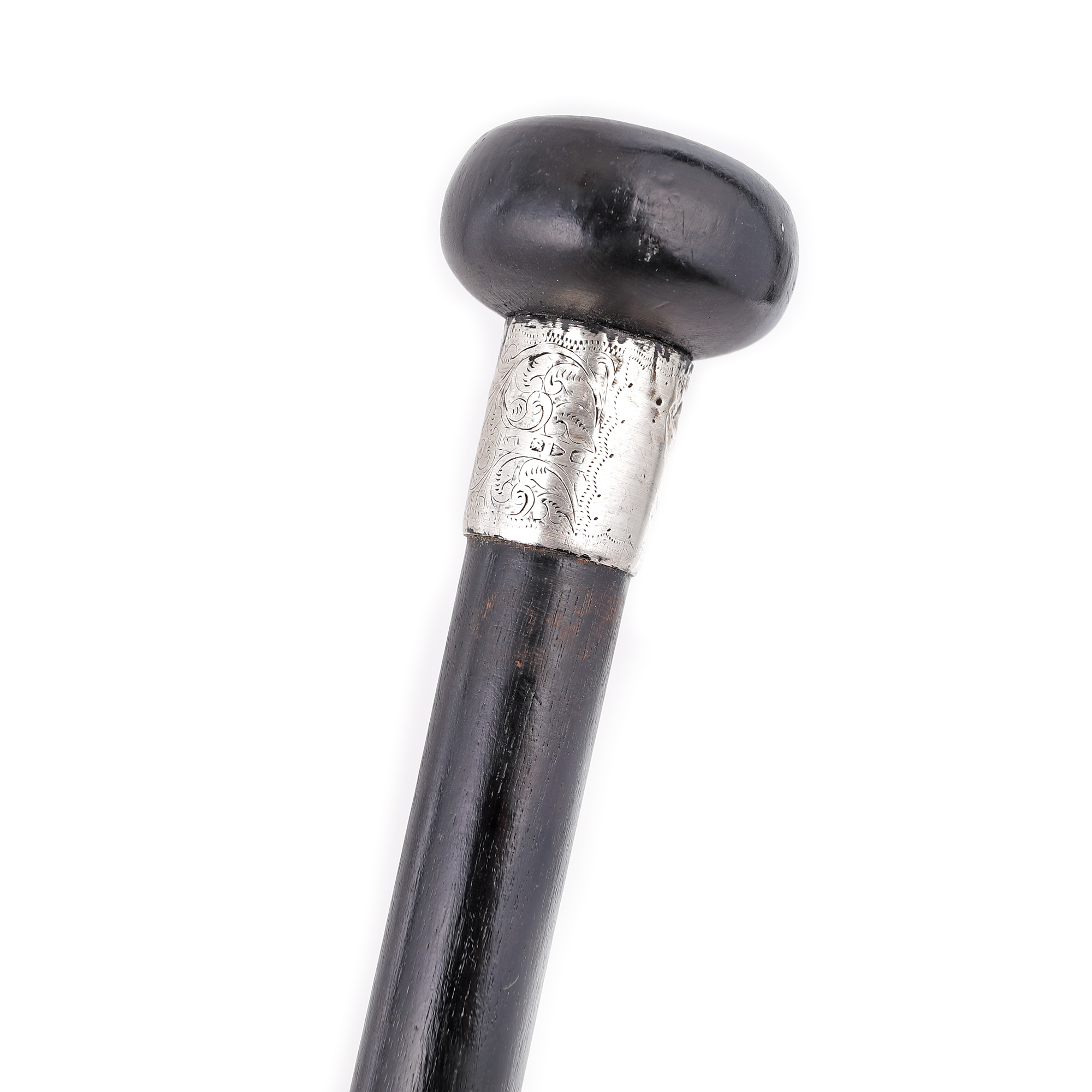 105. Baston din lemn, cu manșon din argint, a doua jumătate a sec. XIX