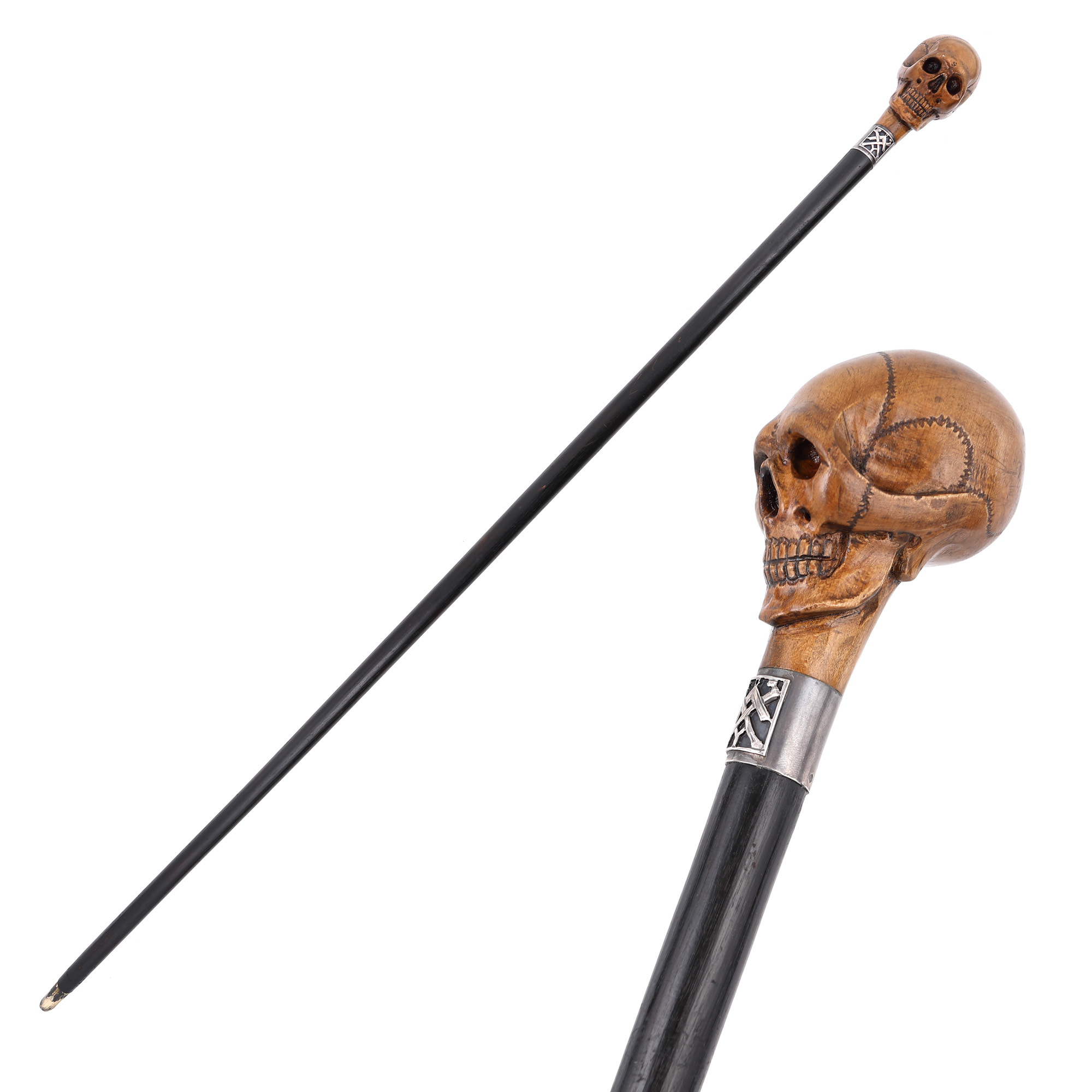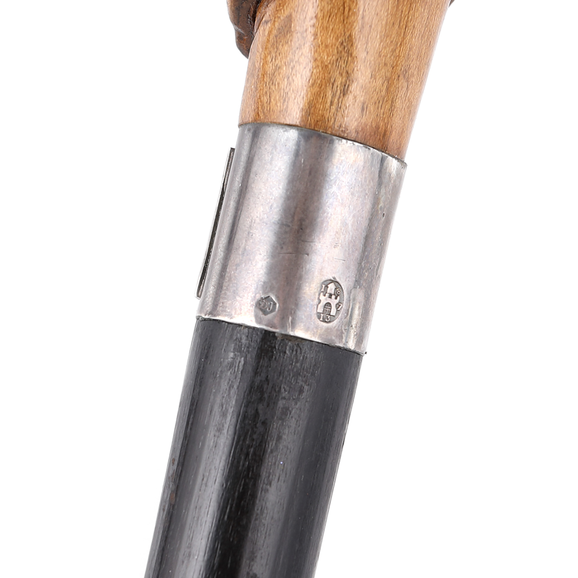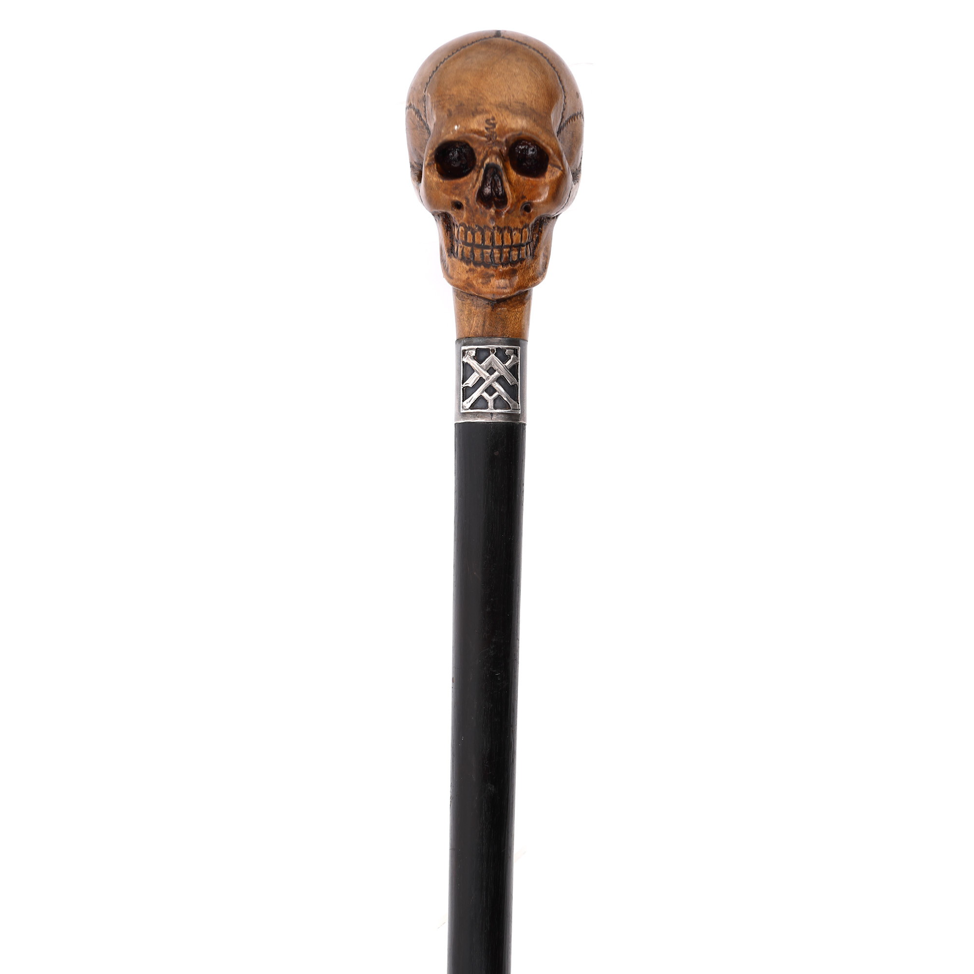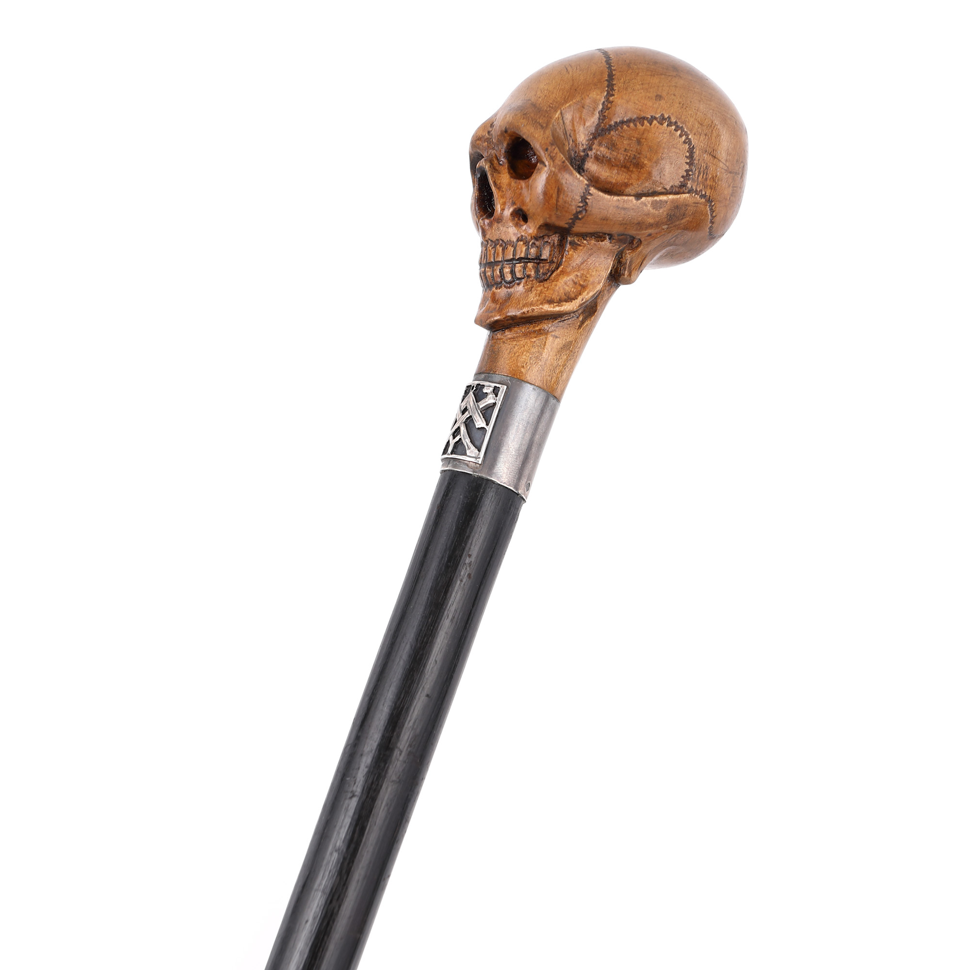 78. Baston din lemn, cu manșon din argint, cu tematica Vanitas, decorat cu însemne masonice