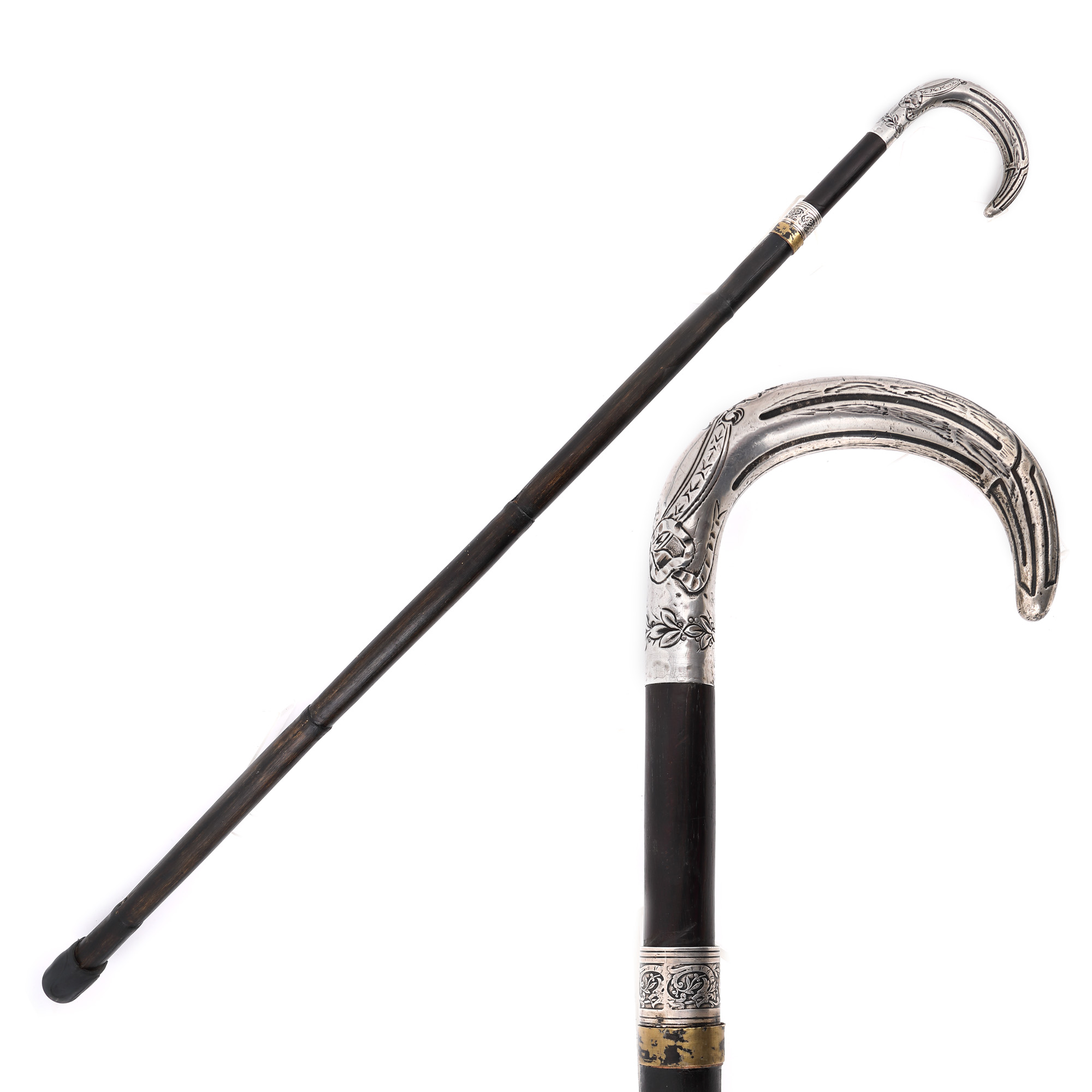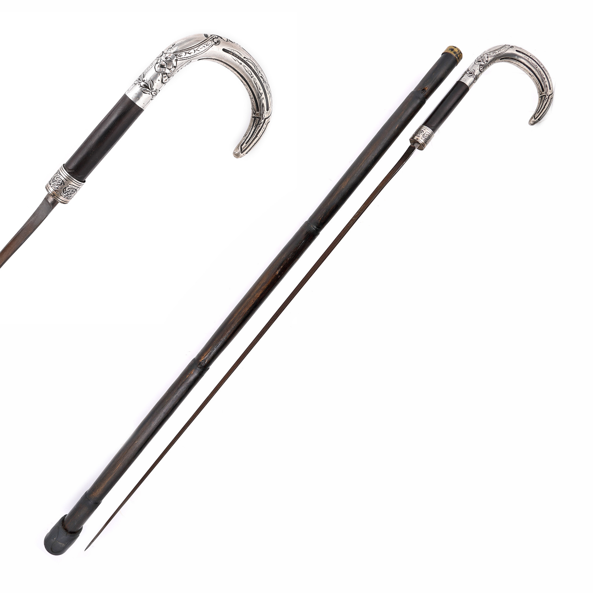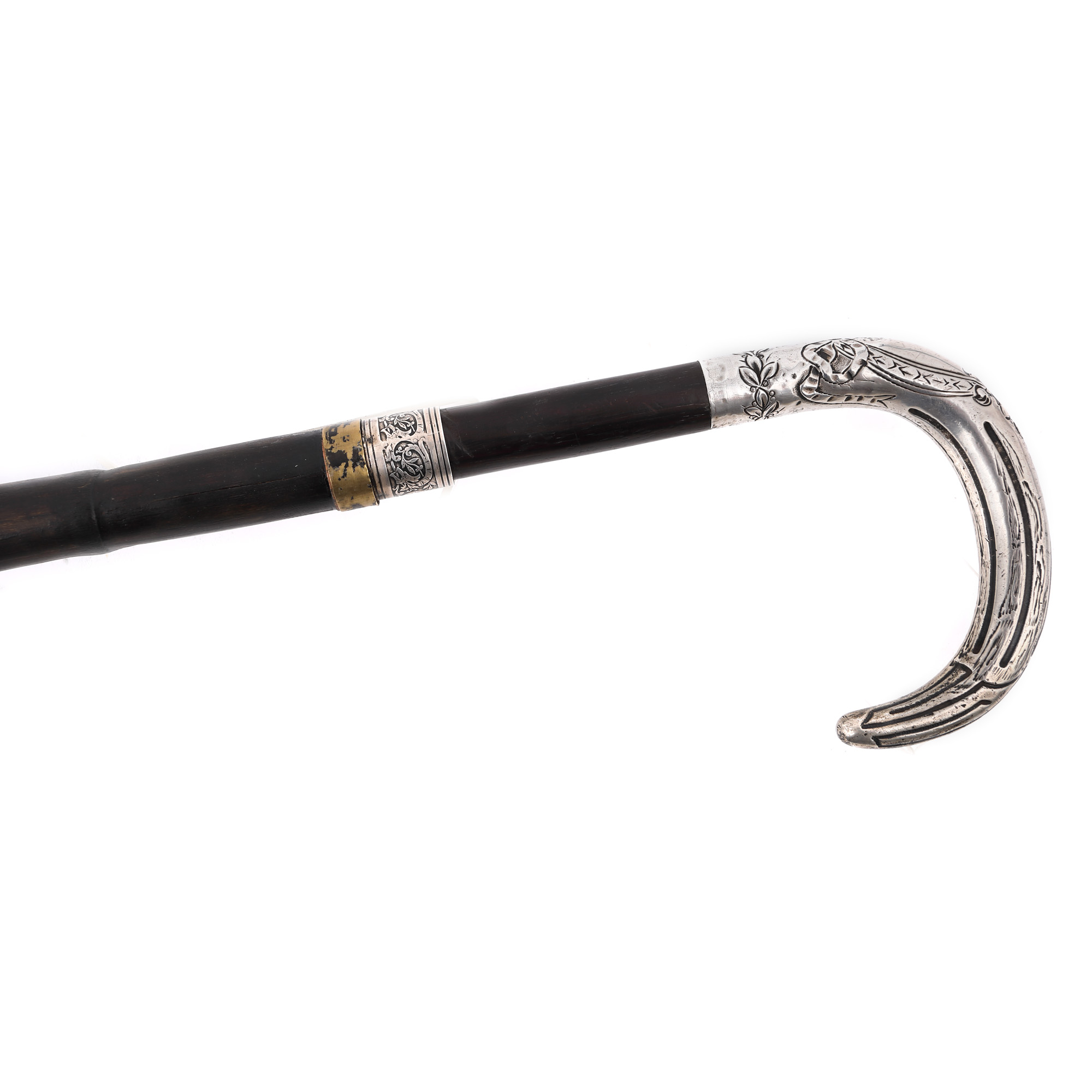 101. Baston din lemn, cu stilet, cu mâner din argint, prima jumătate a sec. XX