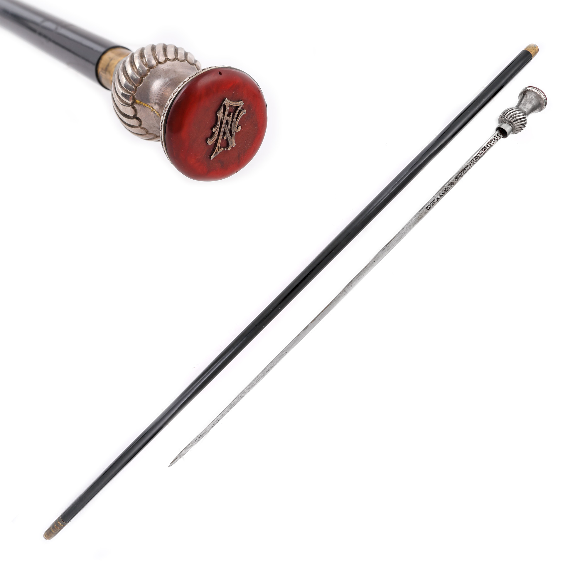 84. Baston din lemn, cu stilet, cu mâner din argint, prima jumătate a sec. XX