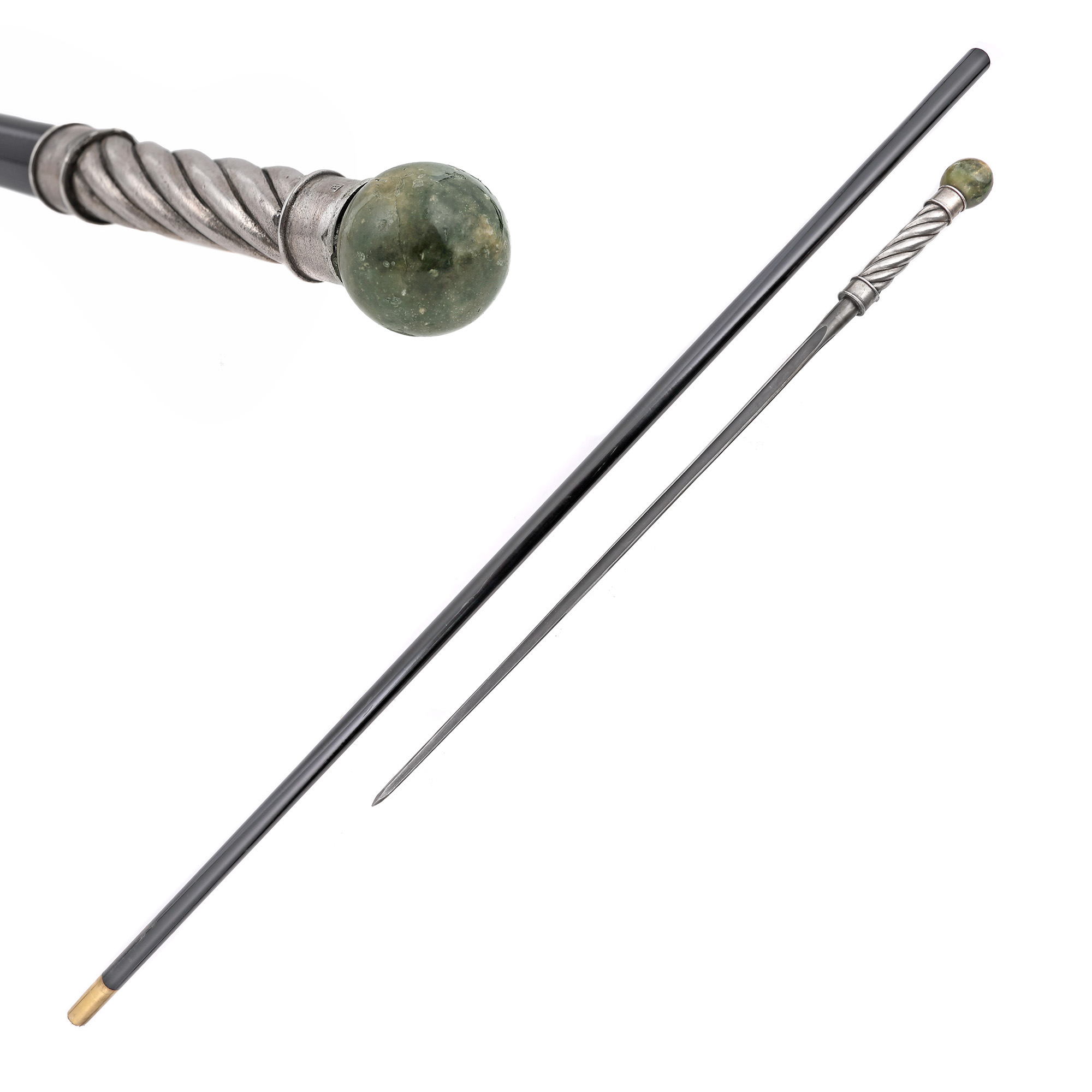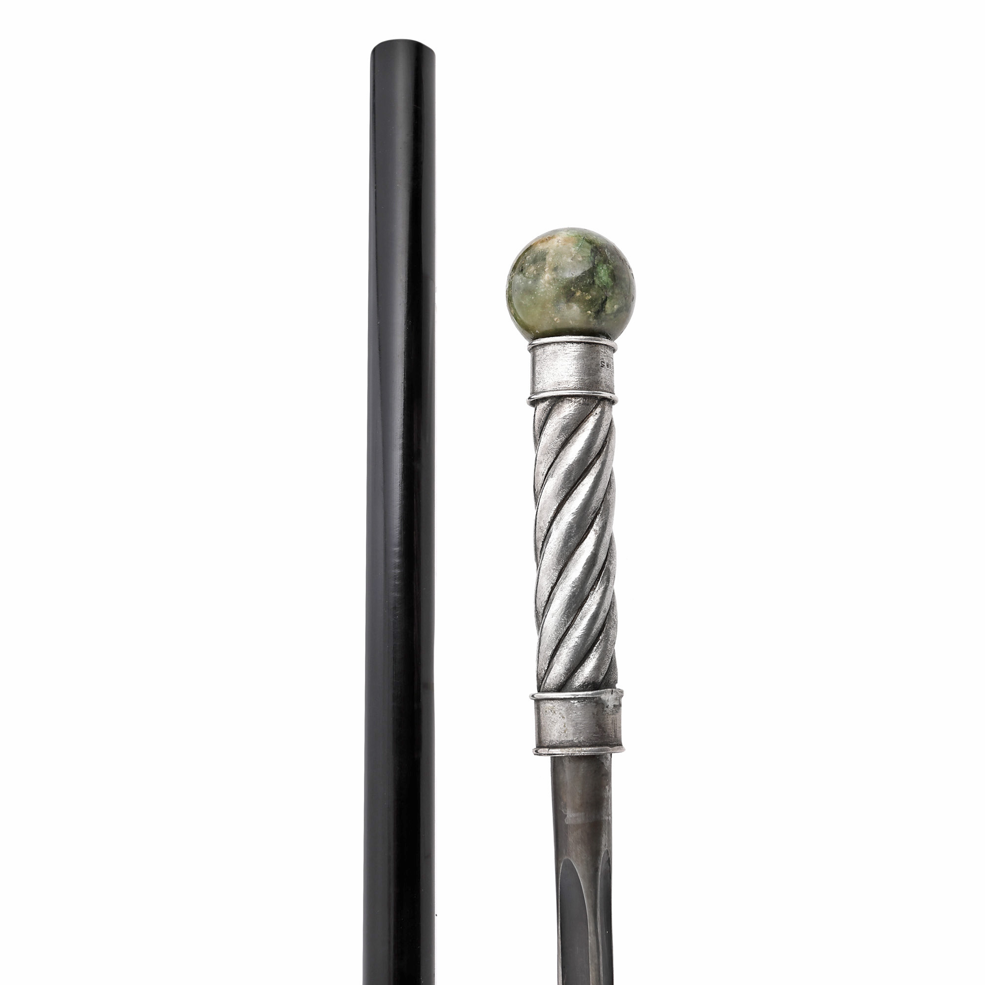 82. Baston din lemn cu stilet, cu mâner din argint și onix verde [Sec. XXI]