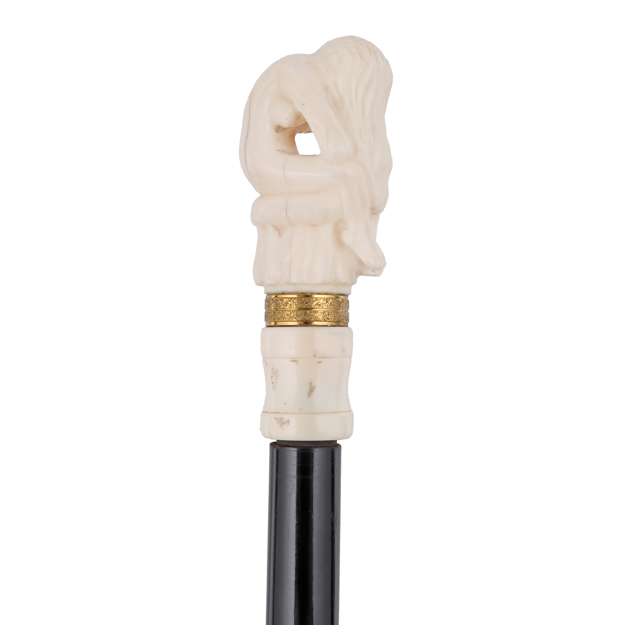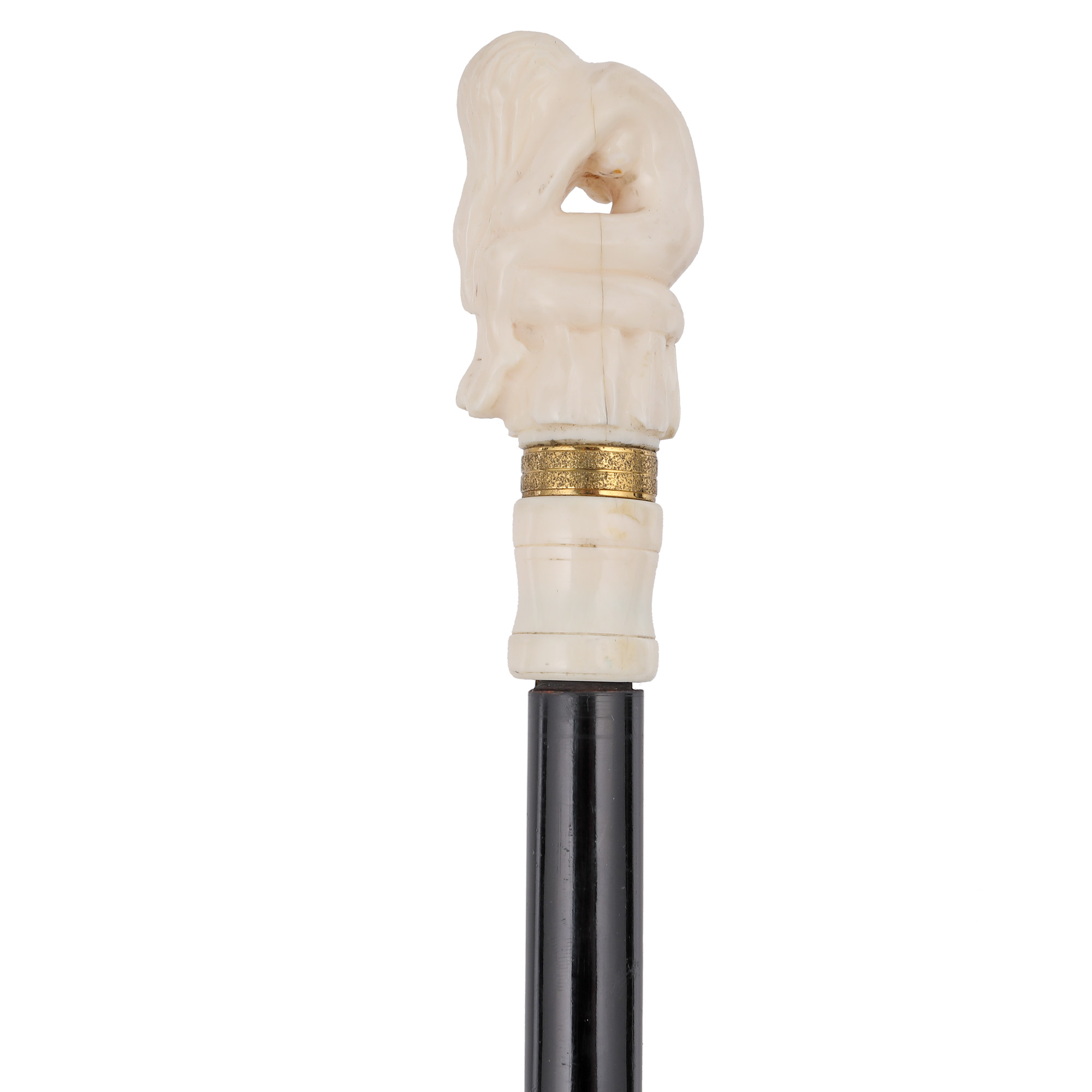 83. Baston din lemn, cu stilet, cu mâner din fildeș înfățisând-o pe Venus așezată, prima jumătate a sec. XX
