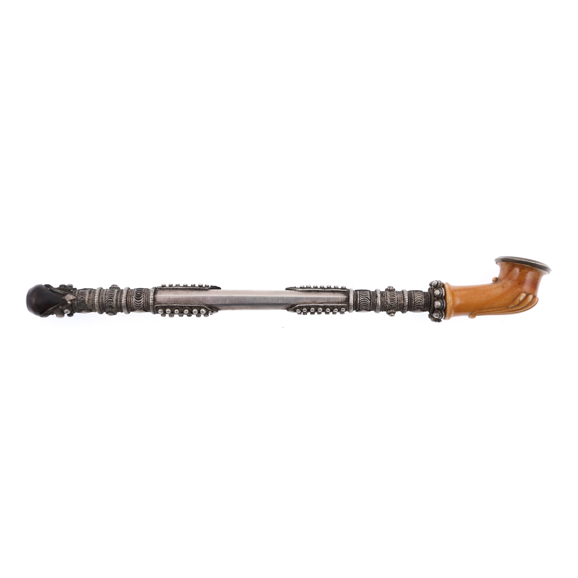 115. Pipă argintată, cu pâlnie din spumă de mare, prima jumătate a sec. XX