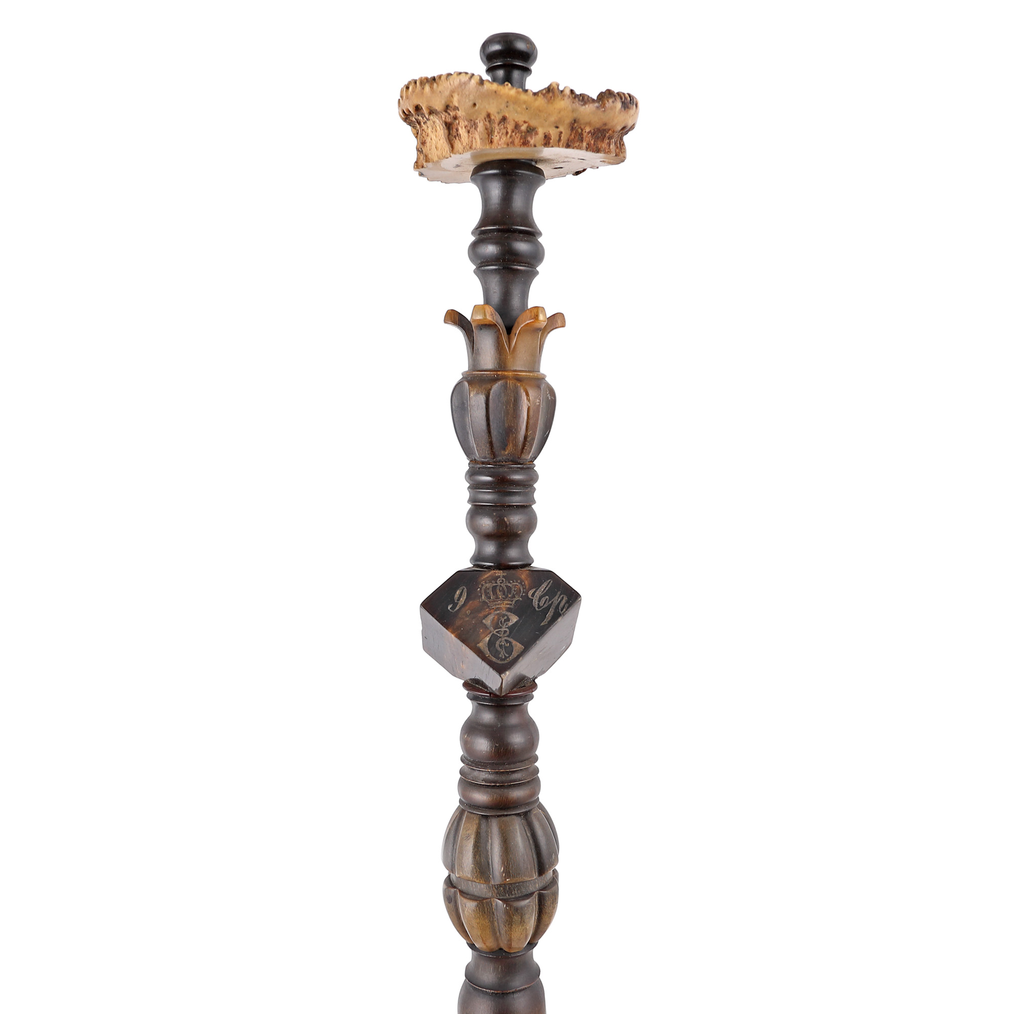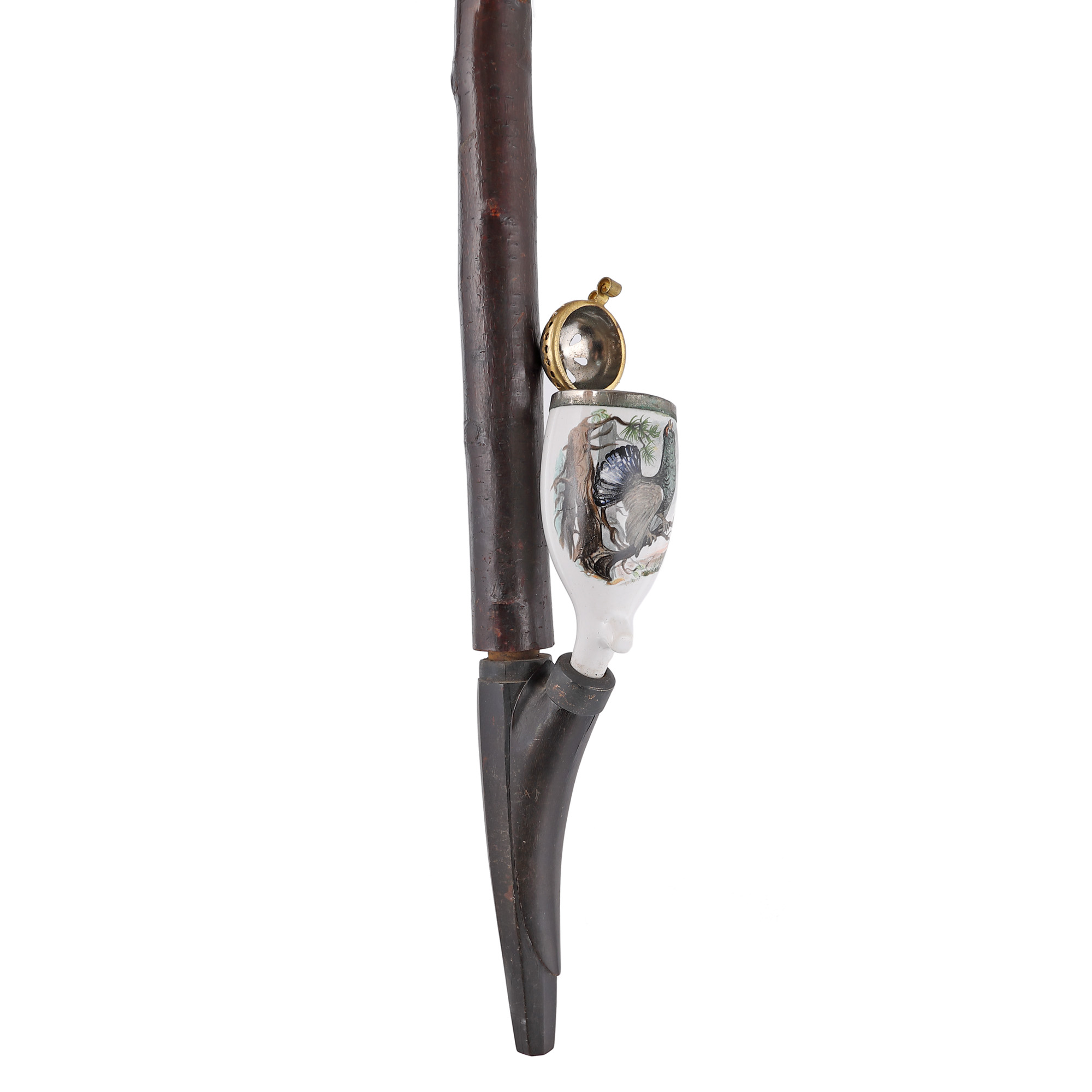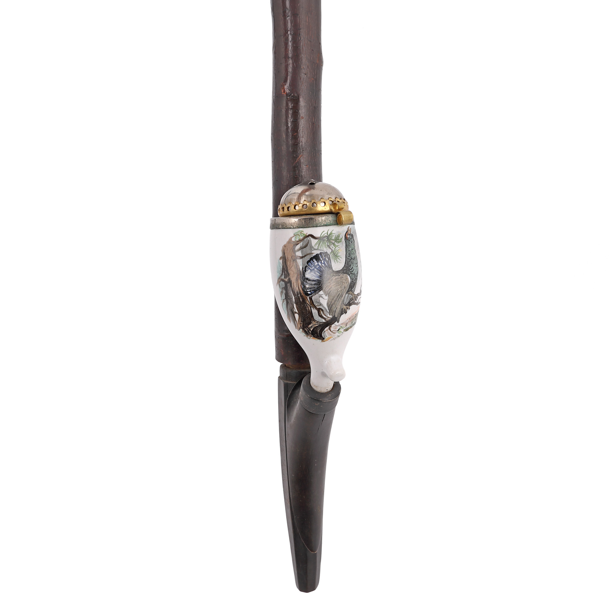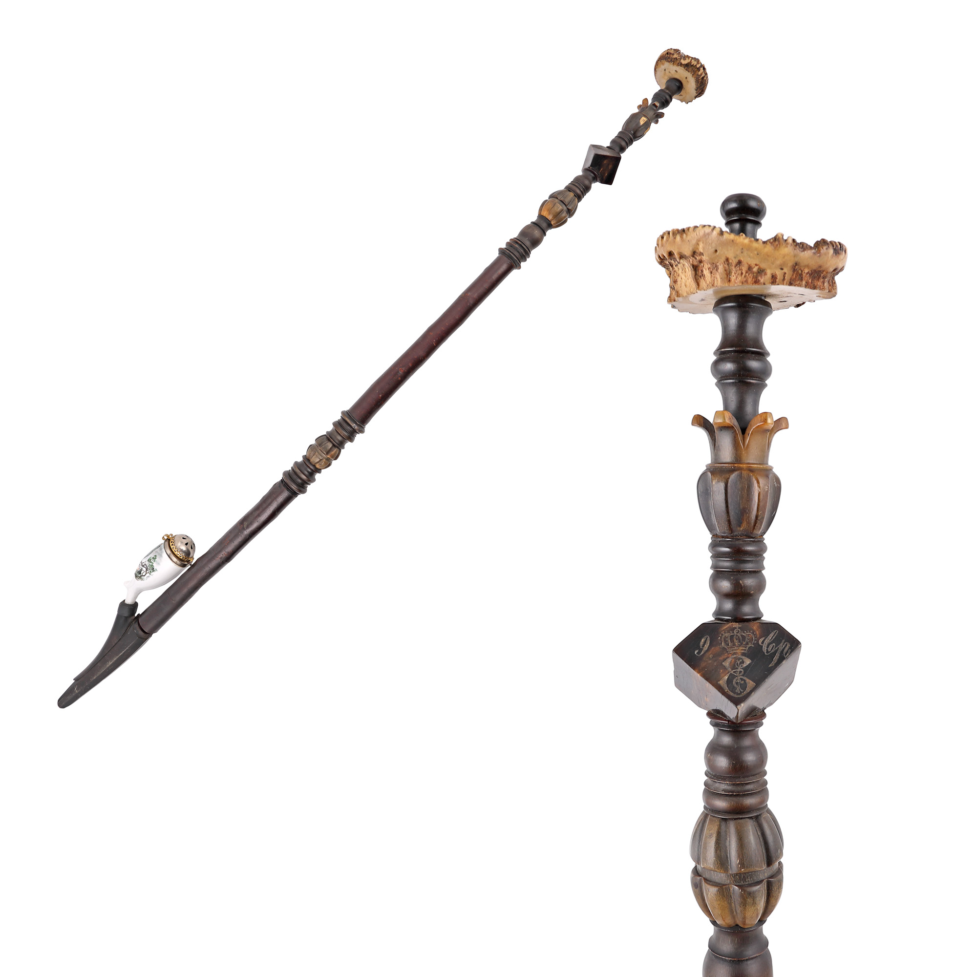 lemn ebenizat, corn de cerb, porțelan pictat manual, alamă