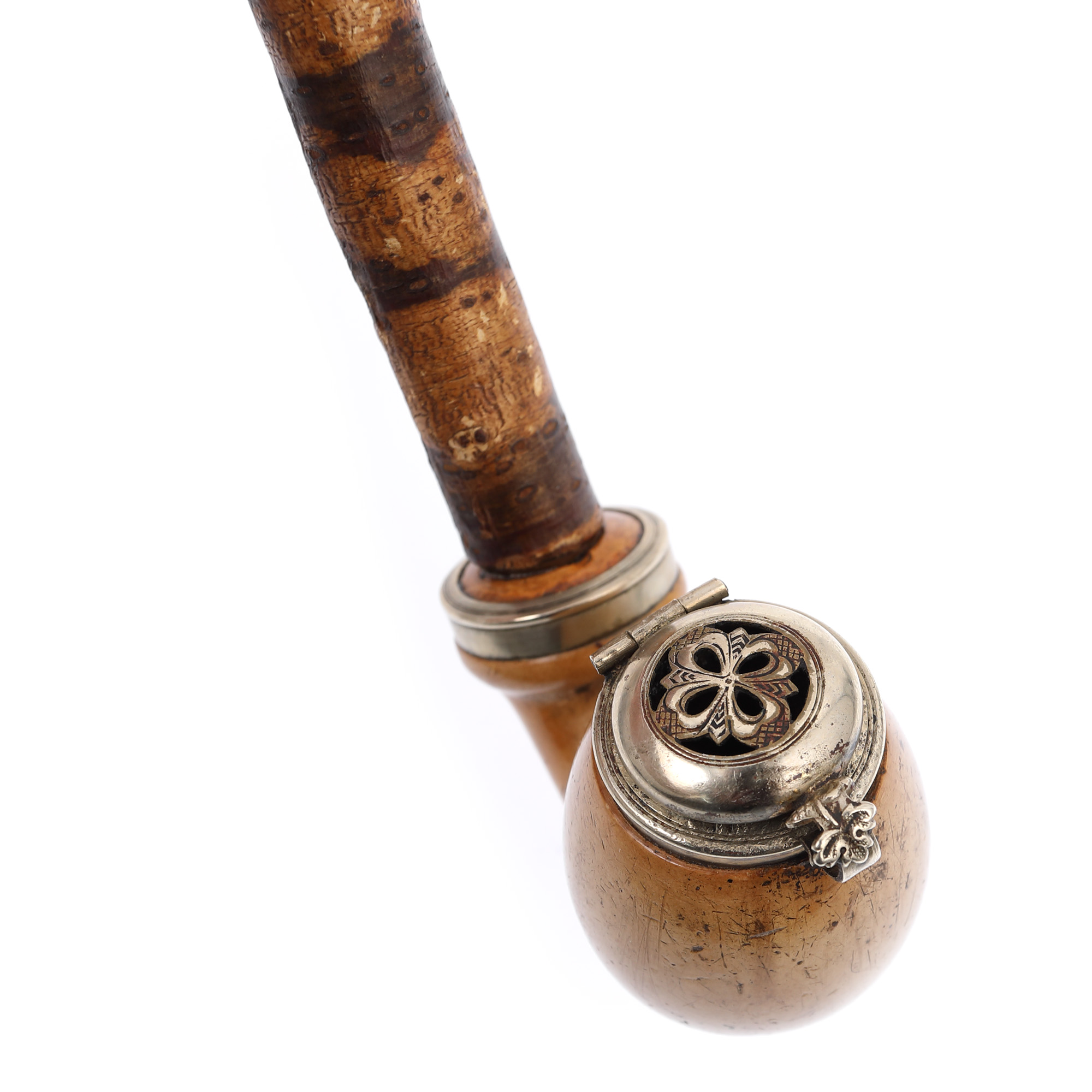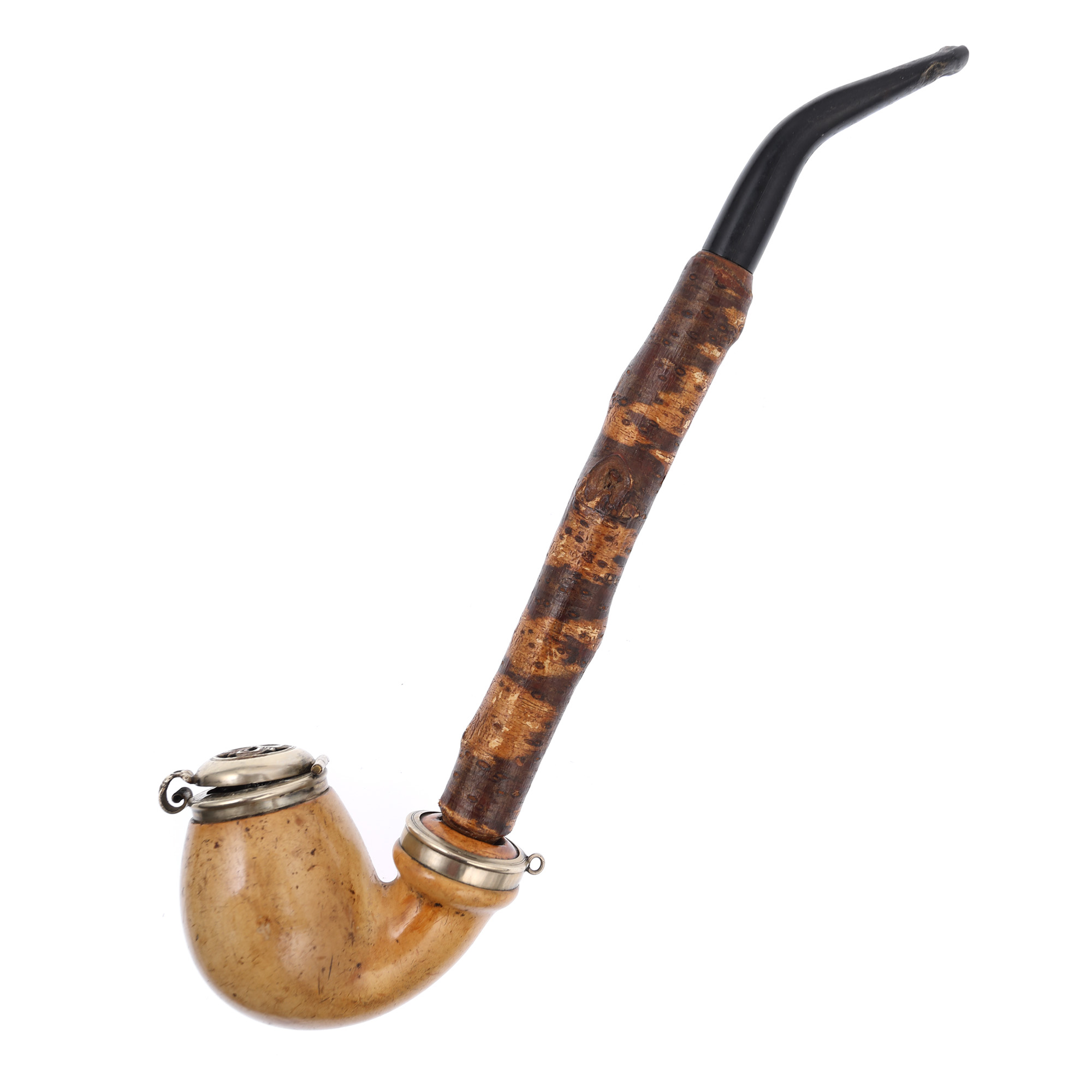 134. Pipă cu bol din spumă de mare, cu muștiuc din lemn de cireș [Sec. XX]
