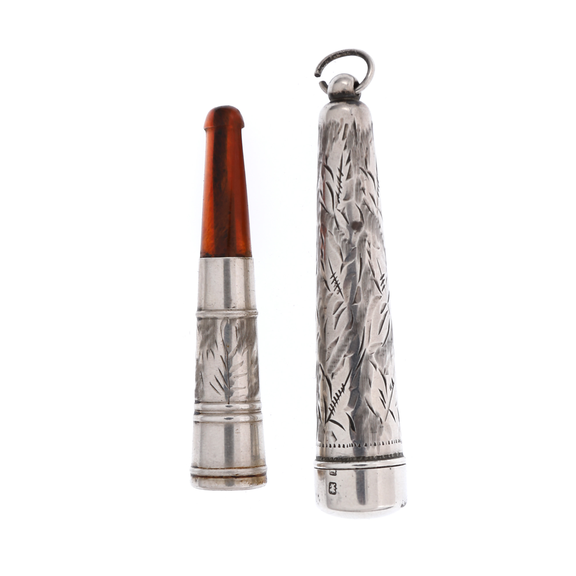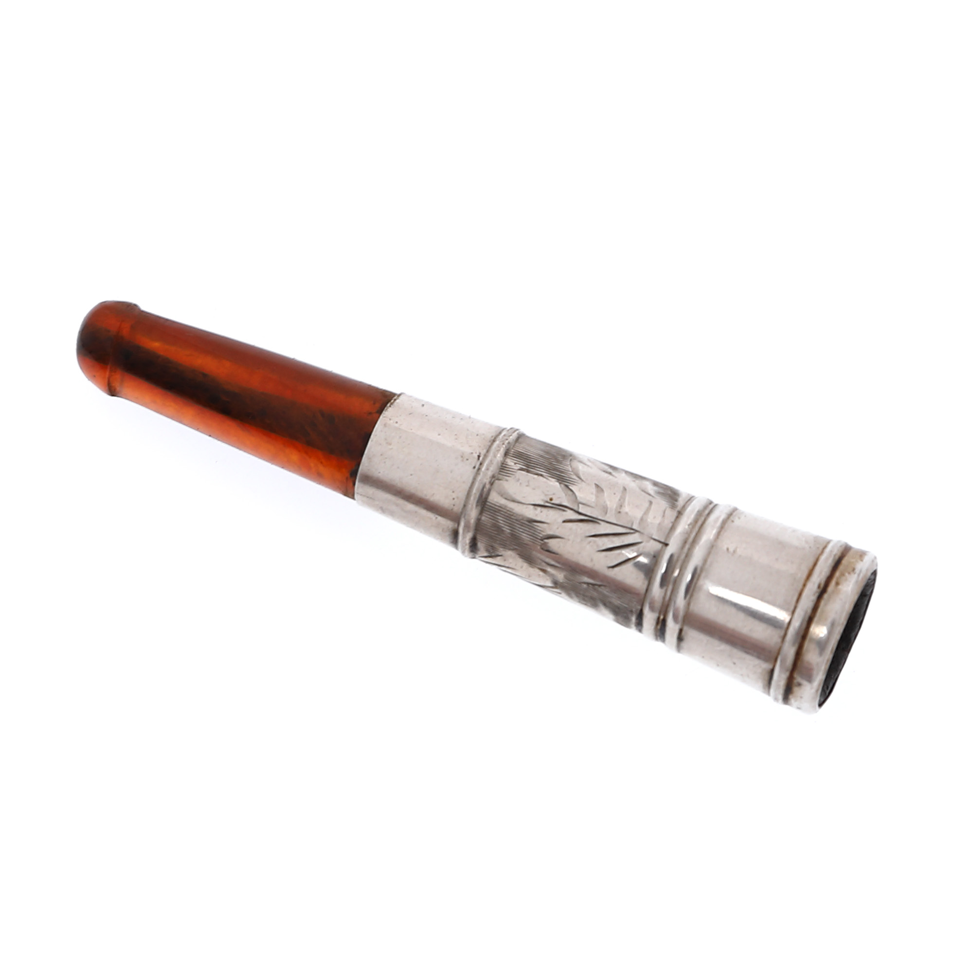 124. Port-țigaret din argint și chihlimbar, cu etui din argint, meșter Thomas Henry Vale, 1910
