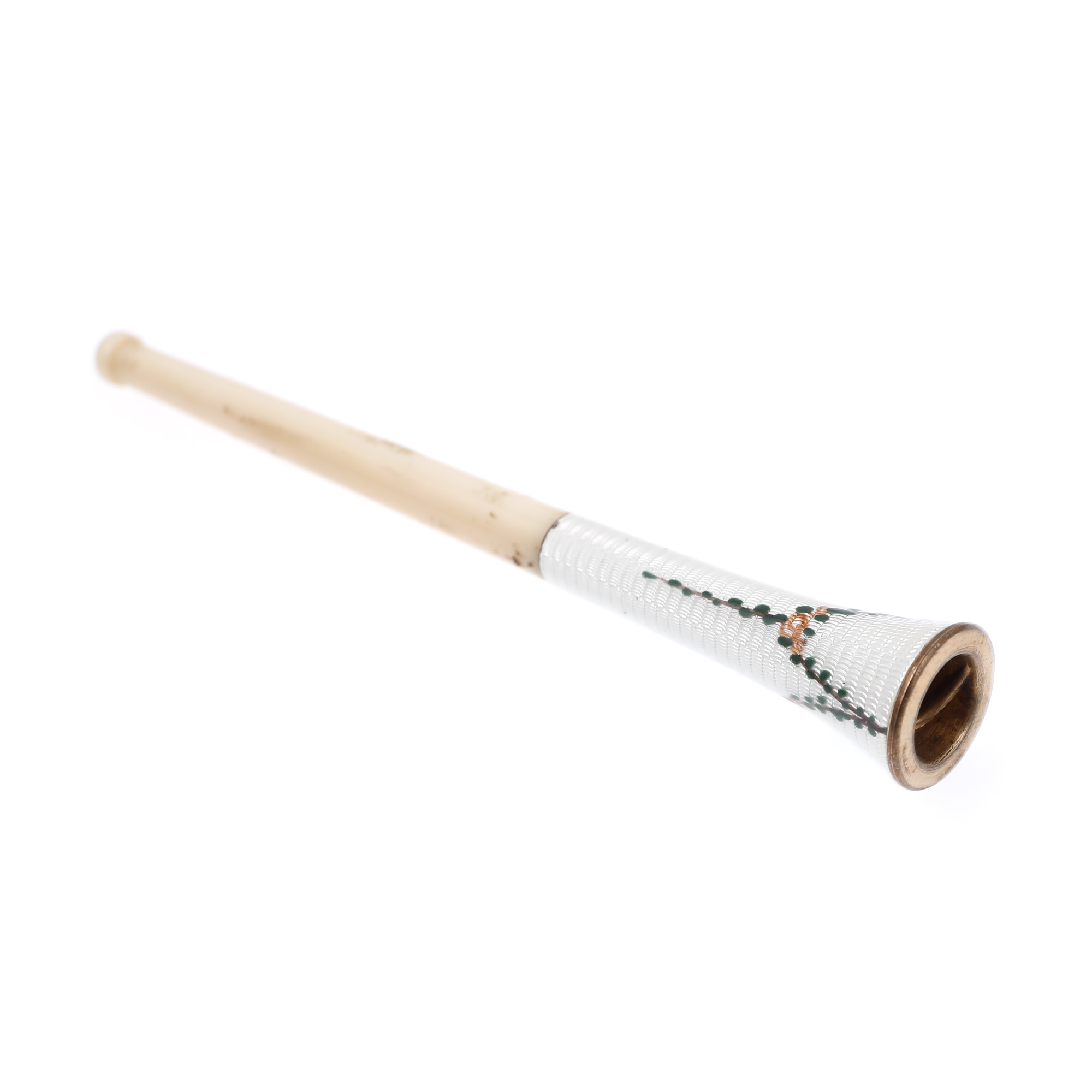 129. Port-țigaret din os, decorat în tehnica cloisonné cu email, prima jumătate a sec. XX