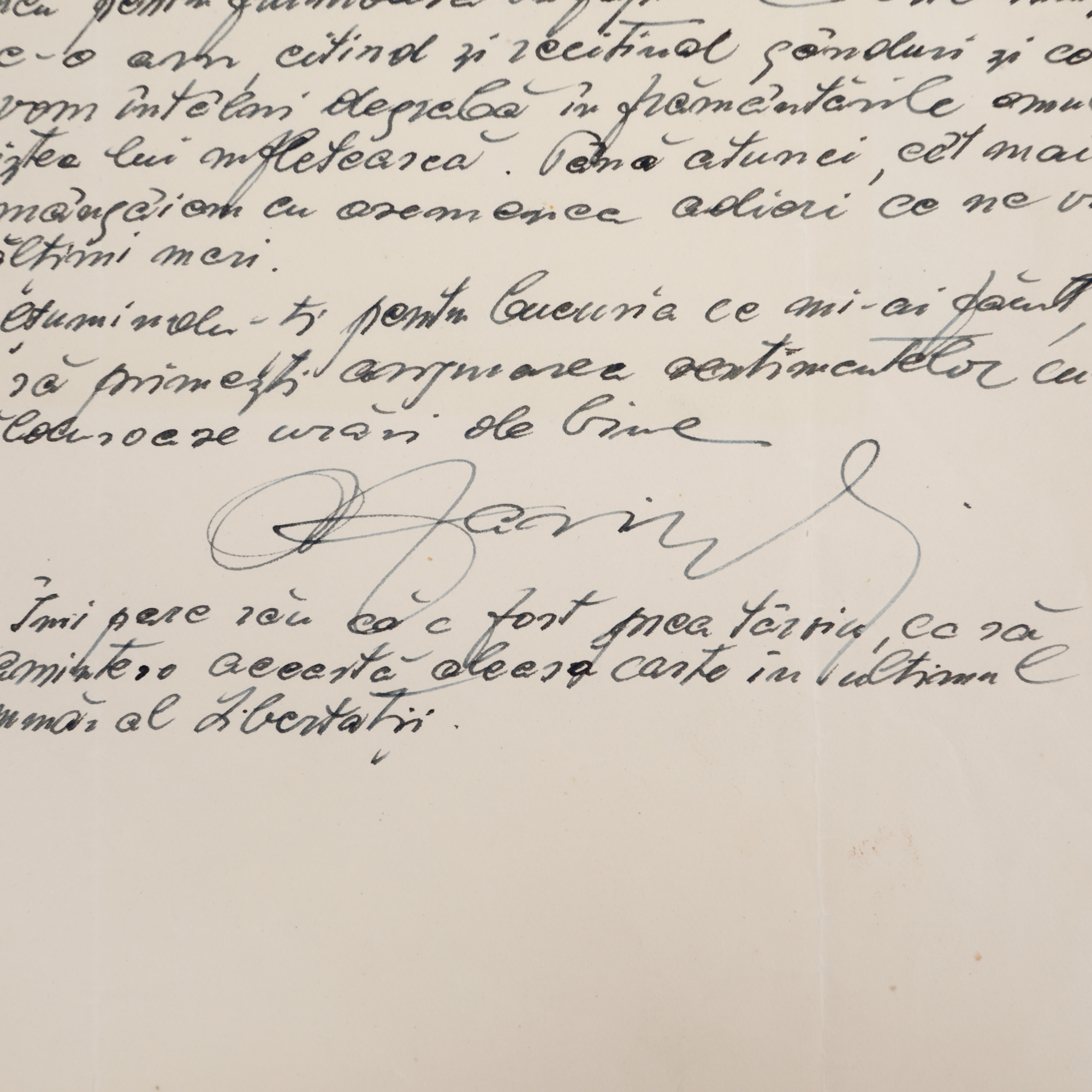 Scrisoarea este redactată cu cerneală albastră, semnată și datată și se referă la publicarea în Spania a cărții lui Nae Ionescu "Îndreptar ortodox".