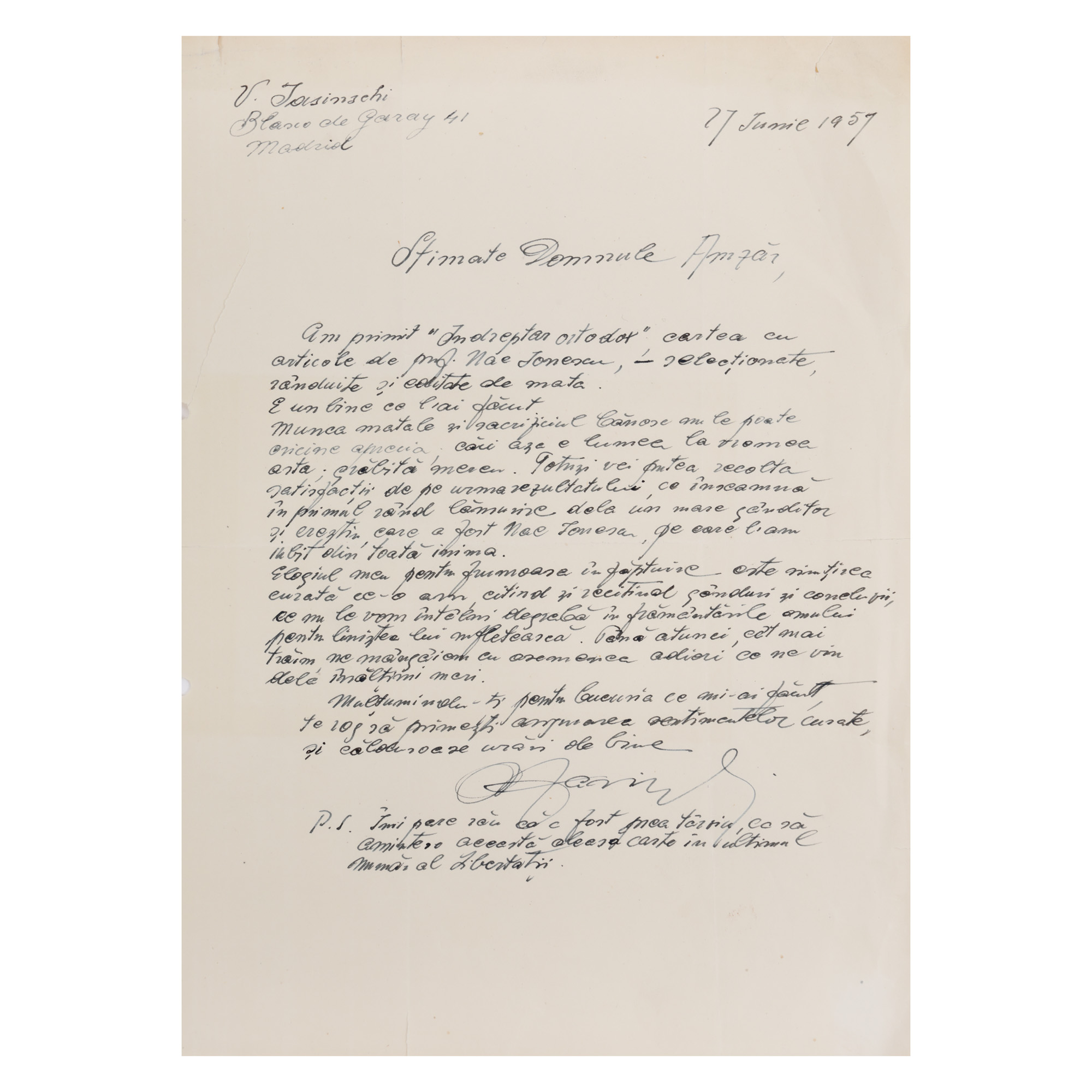 150IC. Corespondență între legionarii V. Iasinchi și D.C. Amzăr, referitoare la publicarea în Spania a unui volum scris de Nae Ionescu, Madrid, 27 iunie 1957
