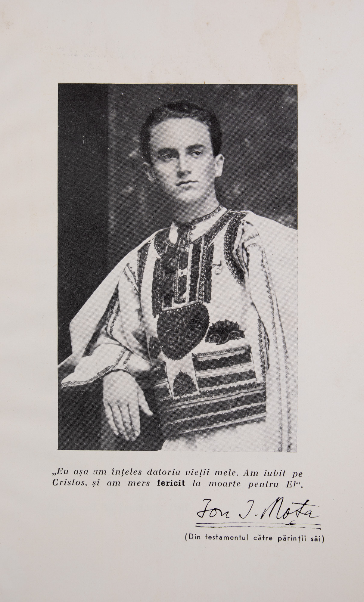 Ion Moța a fost o căpetenie legionară care a participat ca voluntar în războiul civil din Spania de partea trupelor generalului Franco. Căzut în luptă, a devenit o figură pe care propaganda legionară a folosit-o pentru a-și susține imaginea. Volumul era publicat după venirea la putere a legionarilor în toamna anului 1940, alături de generalul Ion Antonescu.