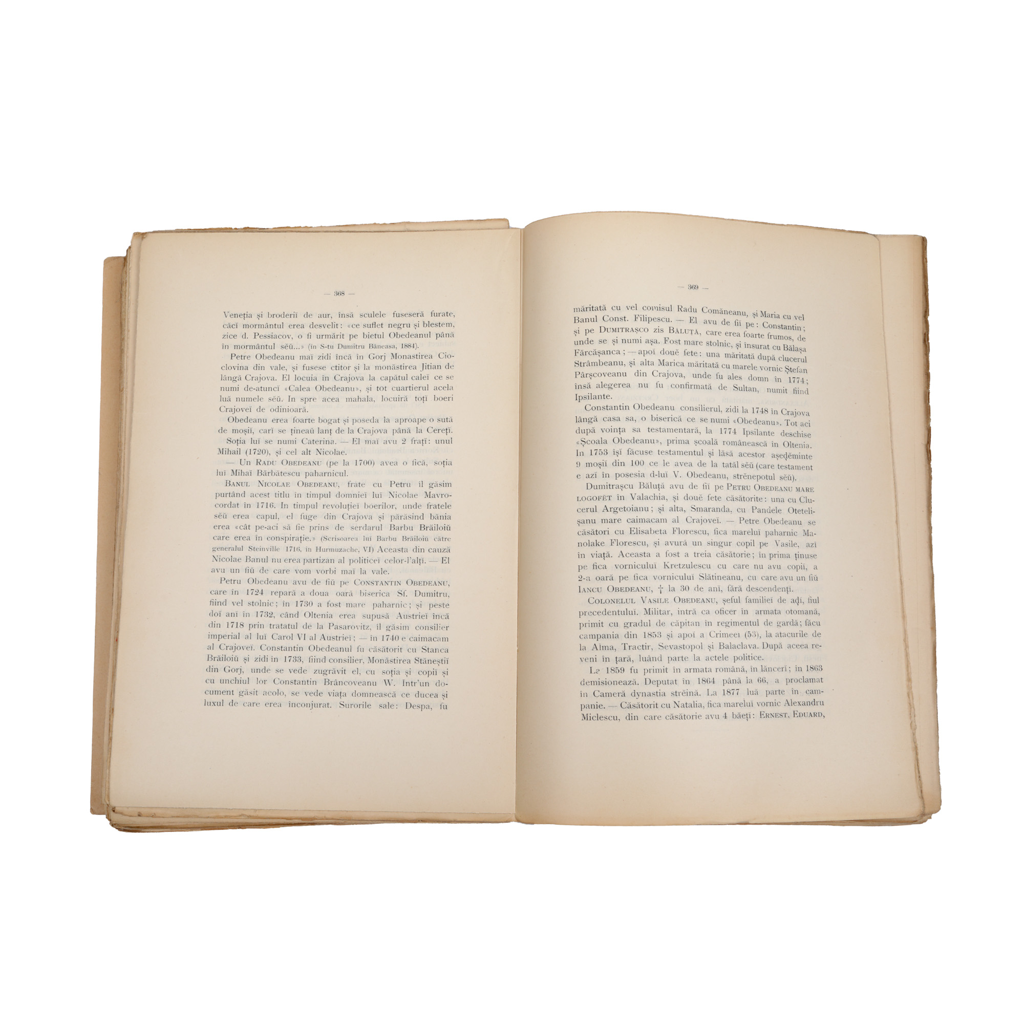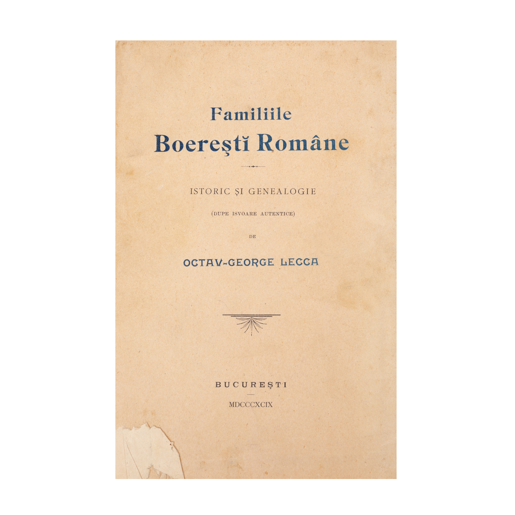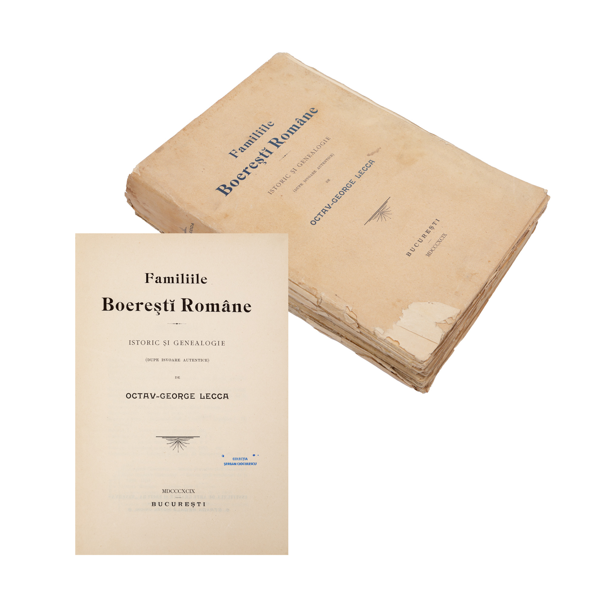 115. "Familiile boerești române", de Octav-George Lecca, București, 1899, cu ex-libris, provine din colecția criticului literar Șerban Cioculescu