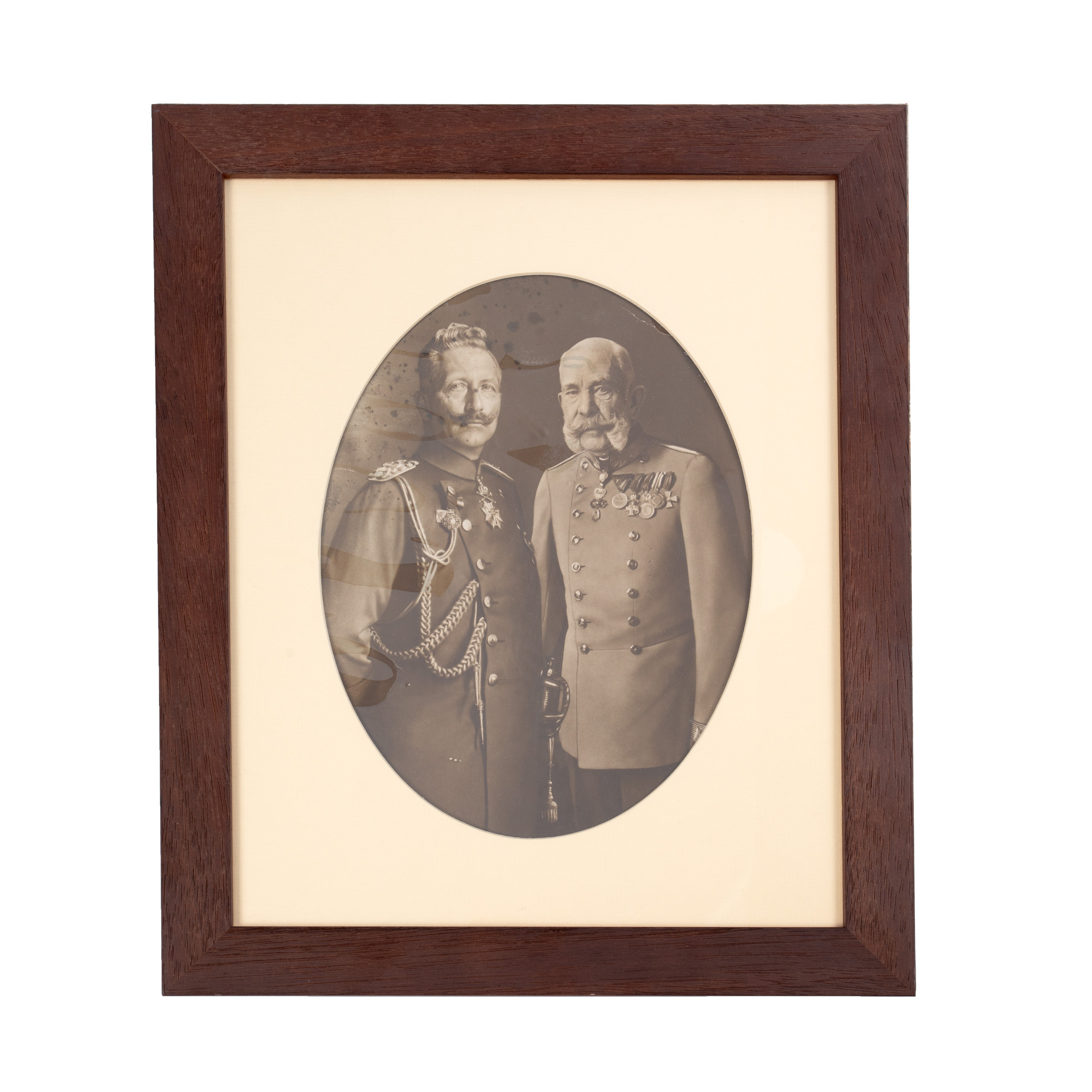Cei doi piloni ai Triplei Alianțe, împărații Germaniei și Austro-Ungariei, erau imortalizați în această fotografie oficială de propagandă. Postura marțială a celor doi, în uniformă militară, cu decorații, dorea să transmită un sentiment de putere, încredere în victorie și soliditatea unei alianțe care a adunat în jurul ei și alte state. Pe verso-ul fotografiei se găsește o însemnare olografă redactată cu cerneală neagră, datată aprilie 1915 și localizată Salzburg.