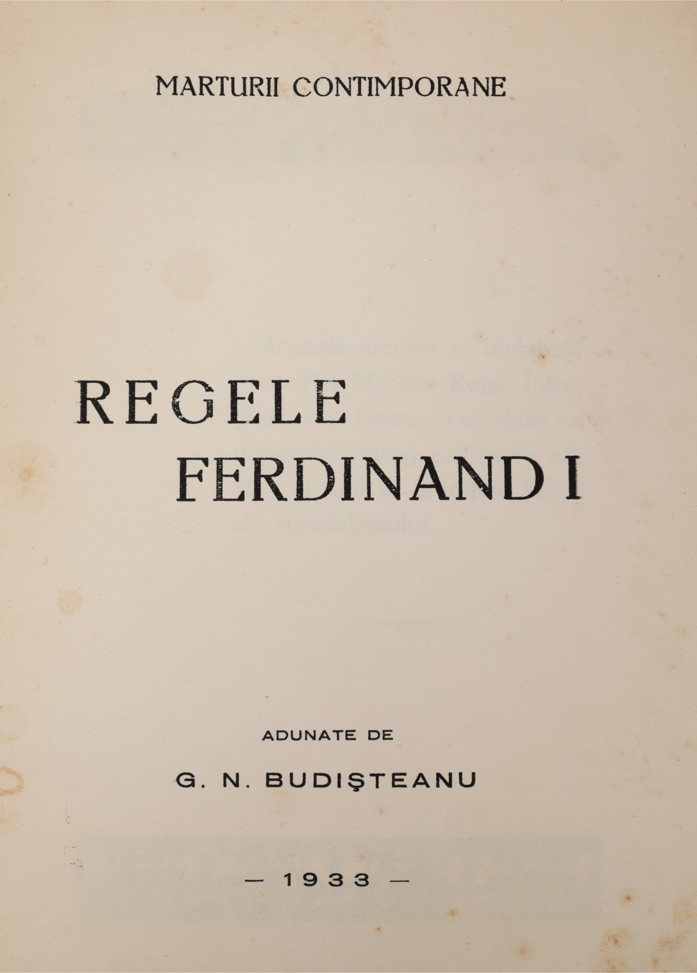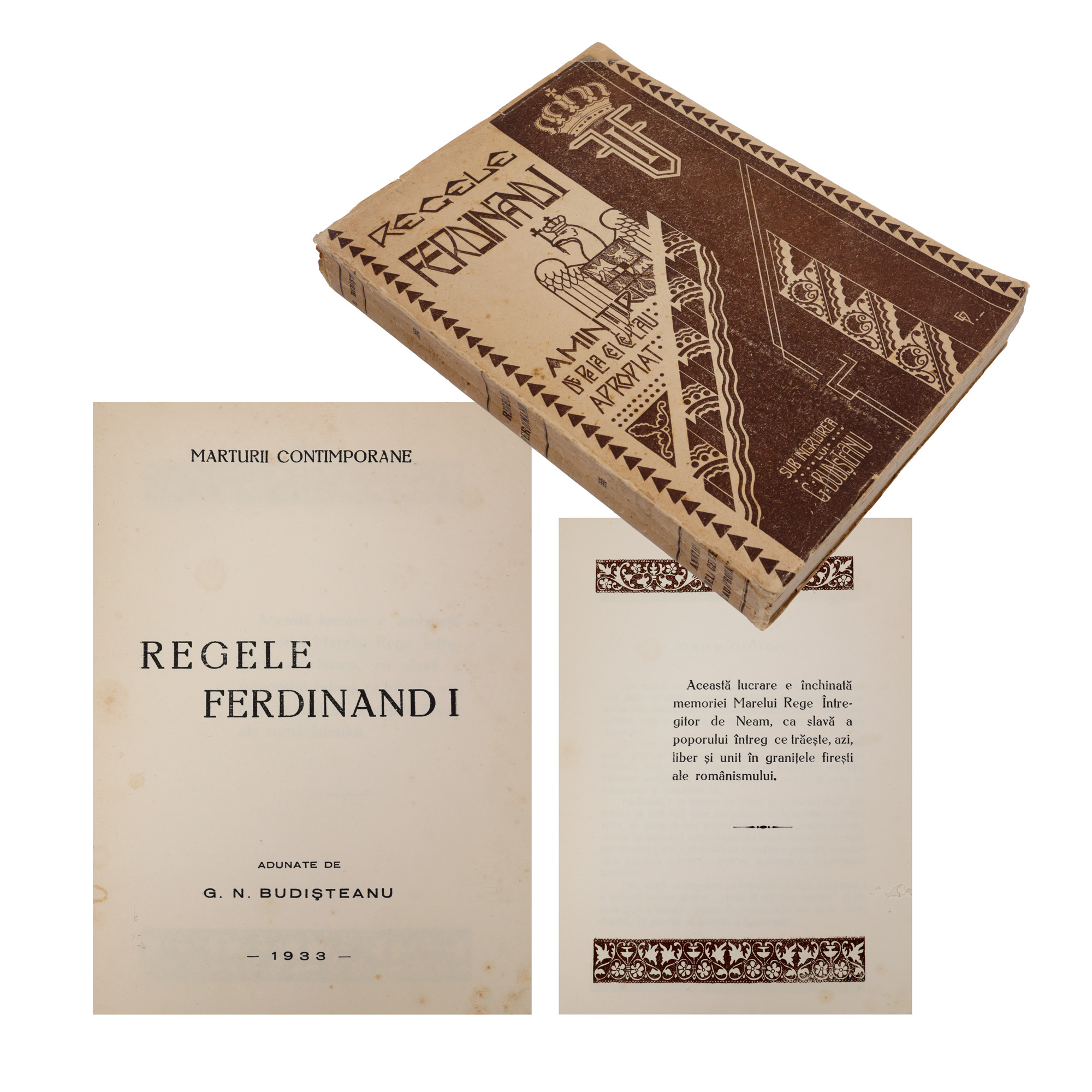 163. ”Mărturii contemporane despre Regele Ferdinand I”, adunate de G.N. Budișteanu, București, 1933, exemplar parțial netăiat