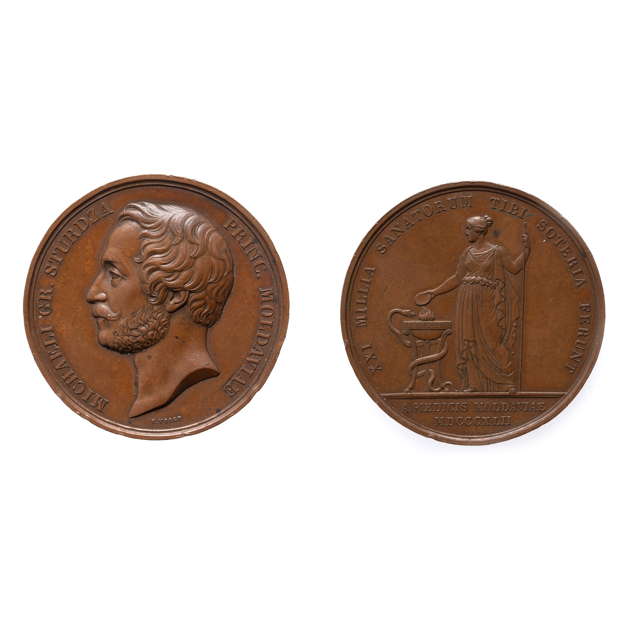 109. Medalia ”Mihail Grigore Sturdza - din partea Colegiului Medicilor din Moldova”, gravor Carl Voigt, 1842, piesă rară
