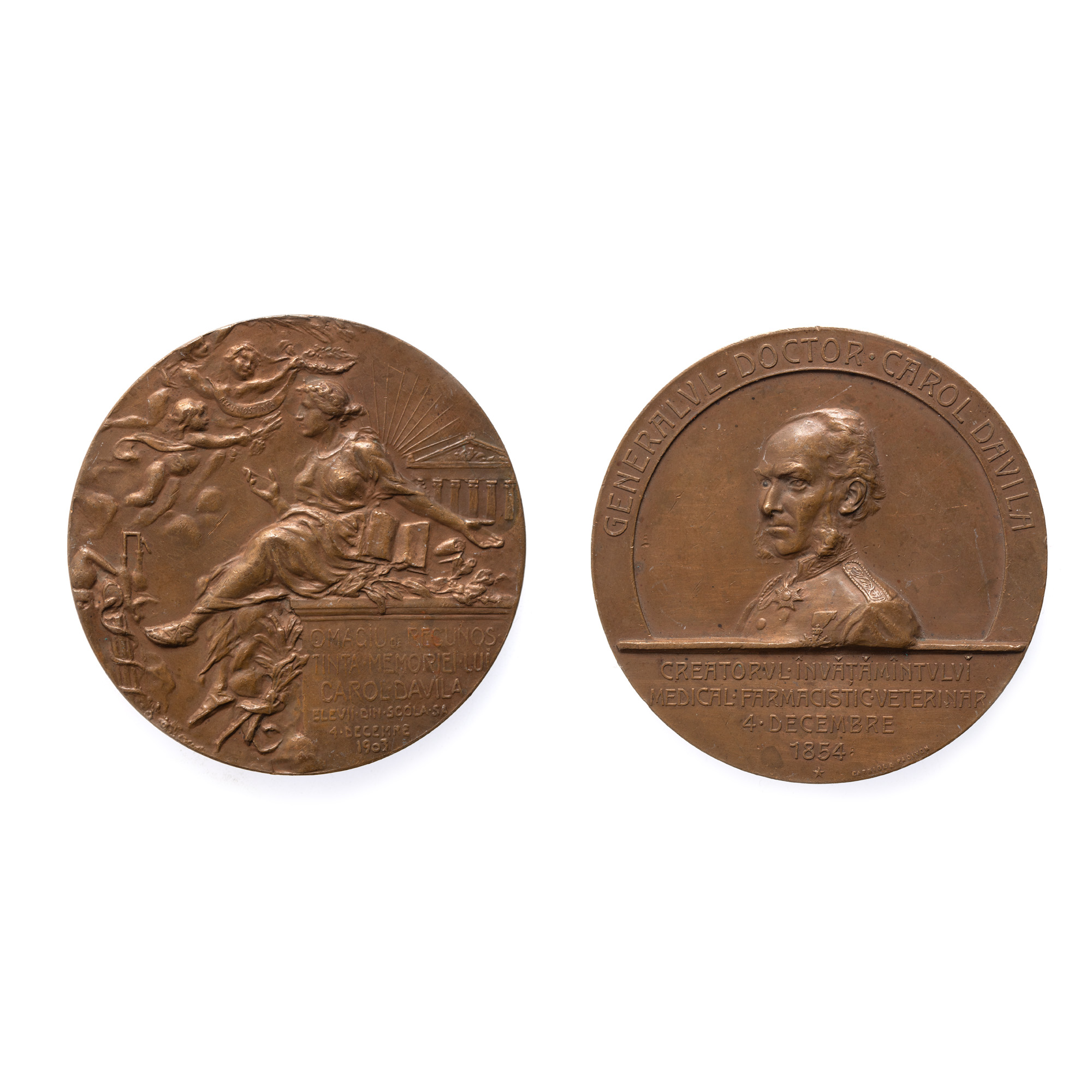 111. Medalia ”Omagiu și recunoștință lui Carol Davila din partea elevilor”, gravori Mauriciu Carniol și Theodor Radivon, 1904