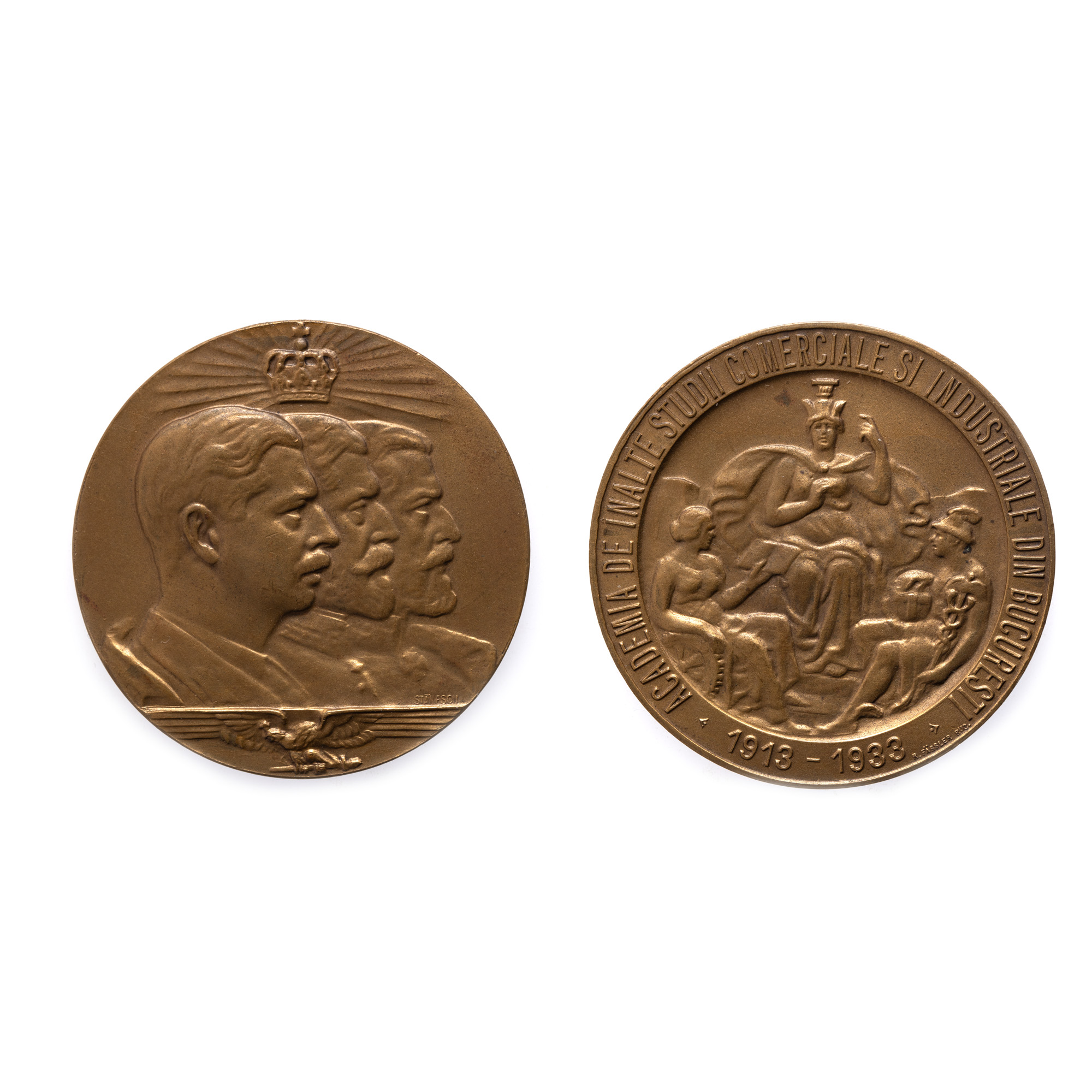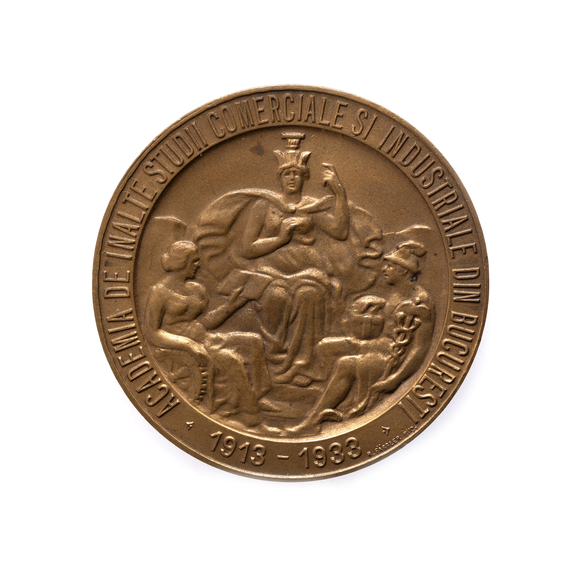 152. Medalie 20 de ani de activitate, Academia de Înalte Studii Comerciale și Industriale din București, gravori Gheorghe Stănescu și R. Fässler, 1933
