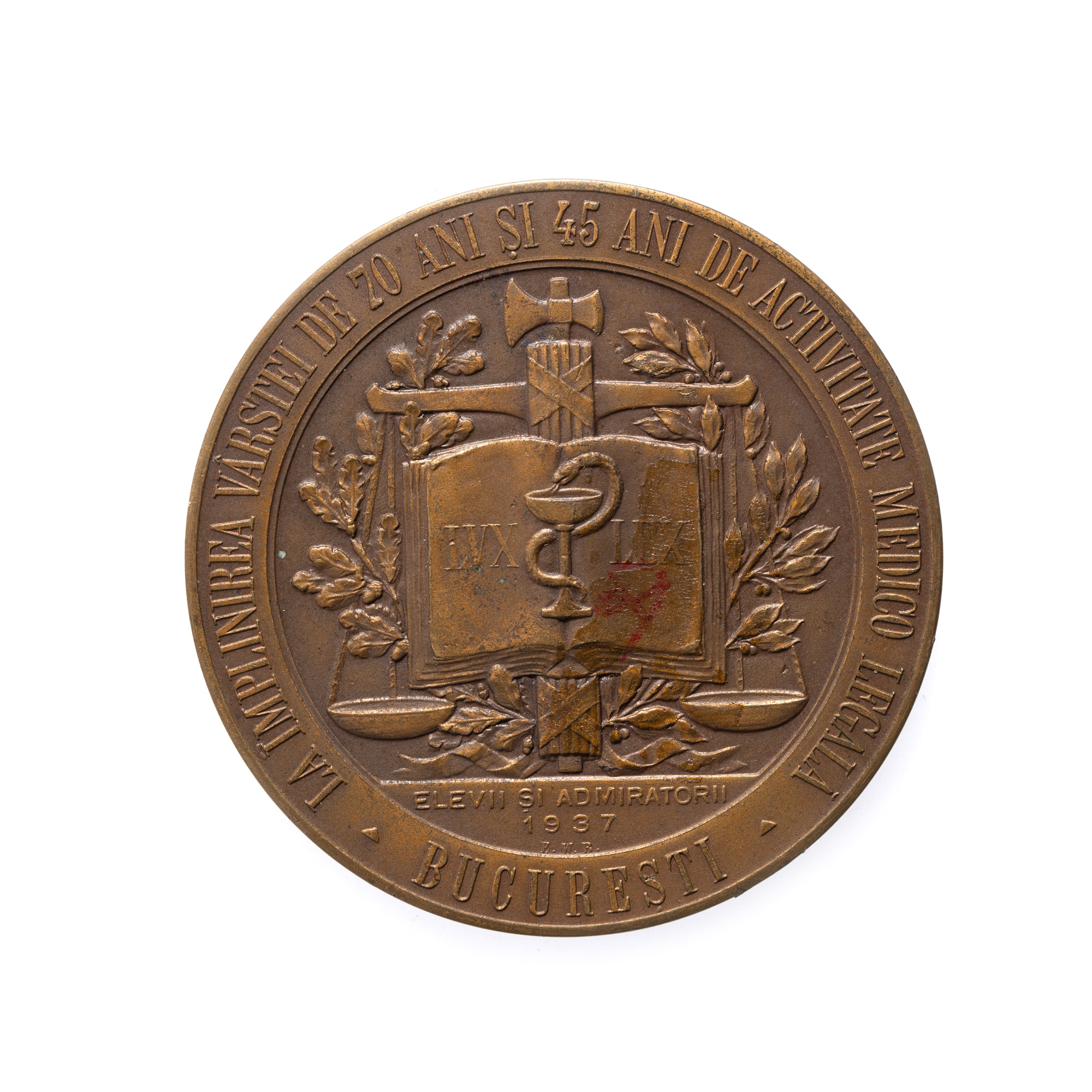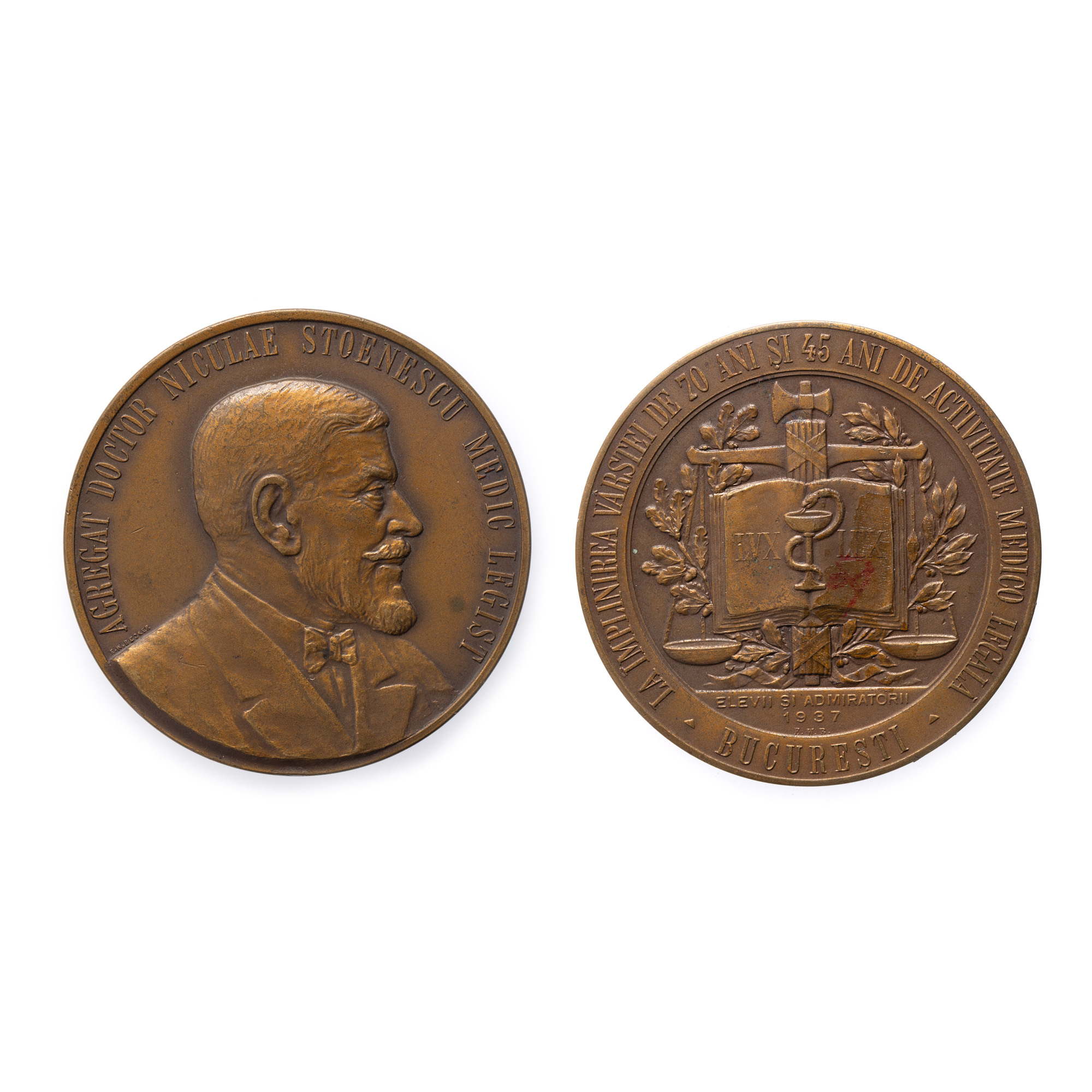 153. Medalie 45 de ani de activitate a medicului legist Niculae Stoenescu, gravor Wilhelm Becker, 1937